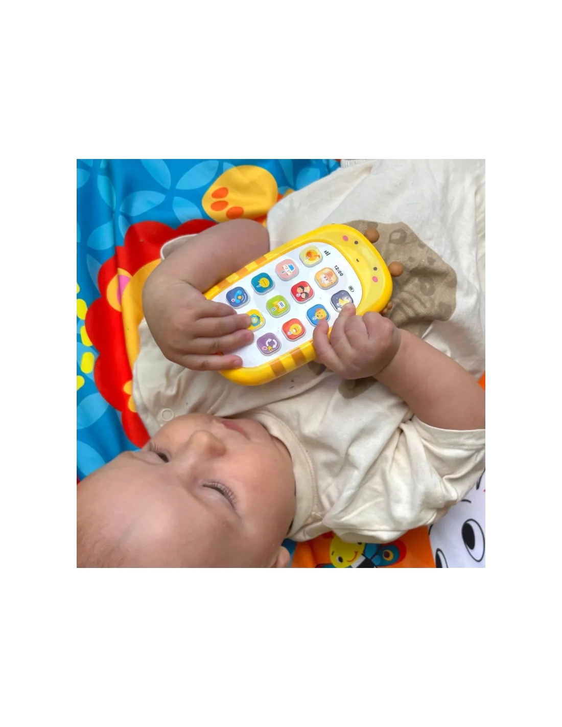 WOOPIE prekės ženklointeraktyvusis telefonas yra nuostabus žaidimų draugas jūsų mažyliui. Jis ne tik yra patrauklaus ir modernaus dizaino, bet ir siūlo įvairias sąveikas, kurios imituoja tikro mobiliojo telefono funkcijas. Muzikos instrumentų garsai, lopšinių melodijos, automobilio garsai, šventės, tekstinės žinutės, gyvūnų garsai, juokas, įeinančių skambučių melodijos ir nuotraukų darymo garsai - visa tai yra viename įrenginyje! Be to, šis žaislas turi garsumo ir įjungimo / išjungimo mygtukus, taip pat diktofono režimą, kuris tikrai prisidės prie linksmybių. Jis leis jūsų vaikui stimuliuoti įvairius pojūčius, pavyzdžiui, klausą, suvokimą ir pažintinę sąveiką.