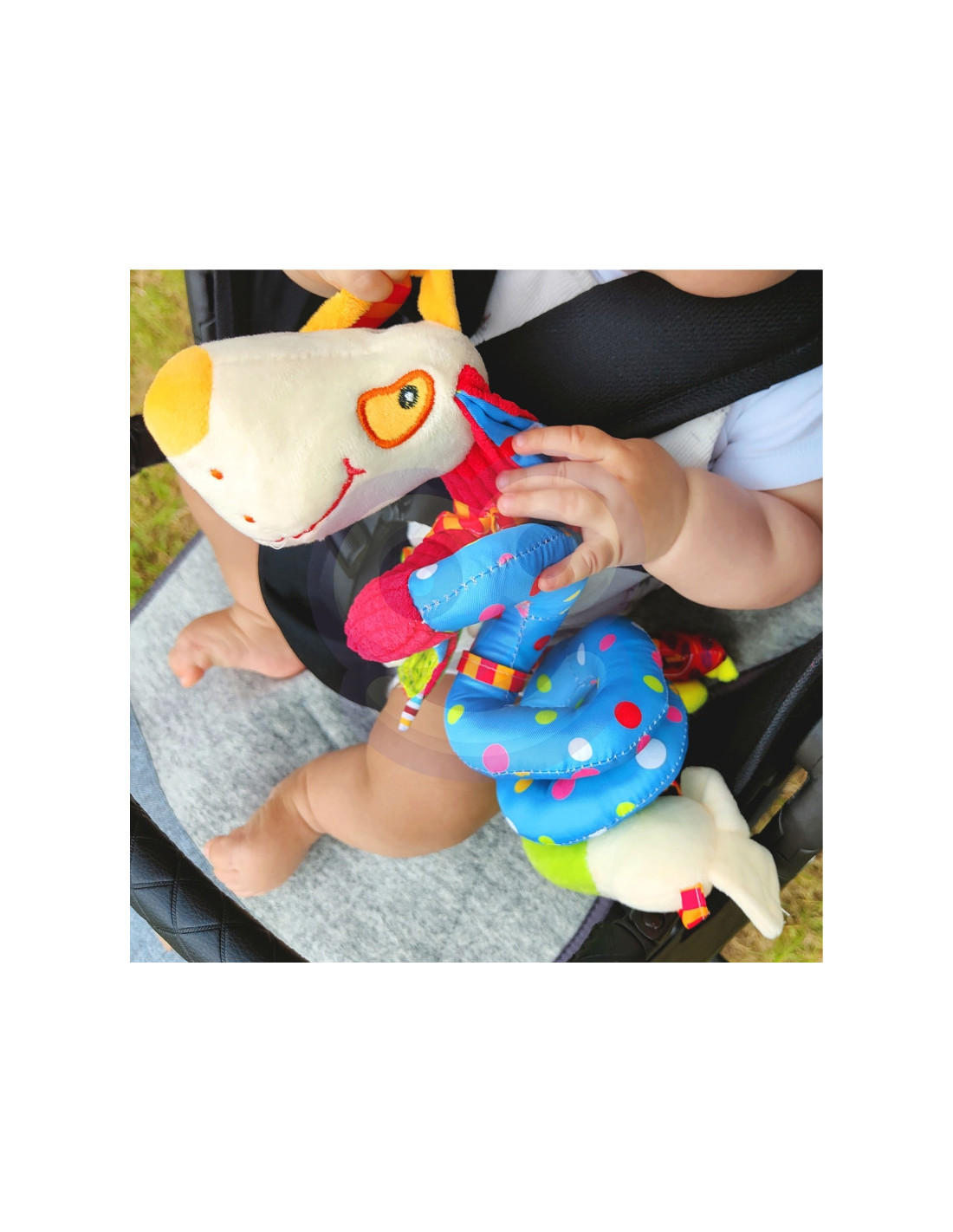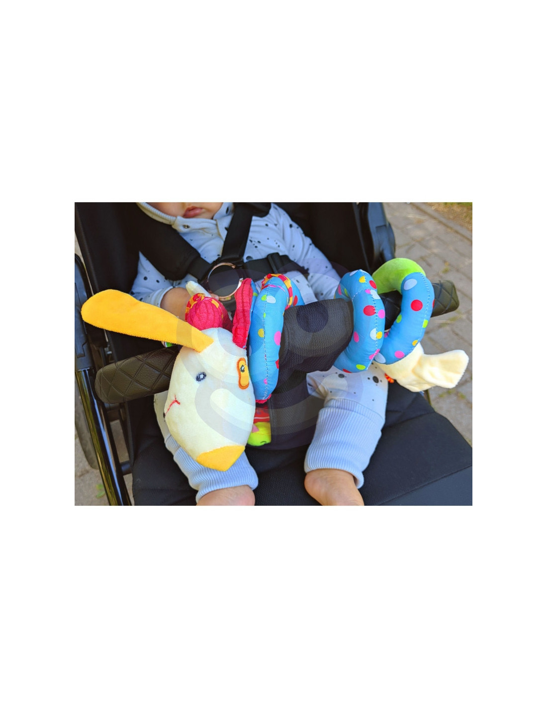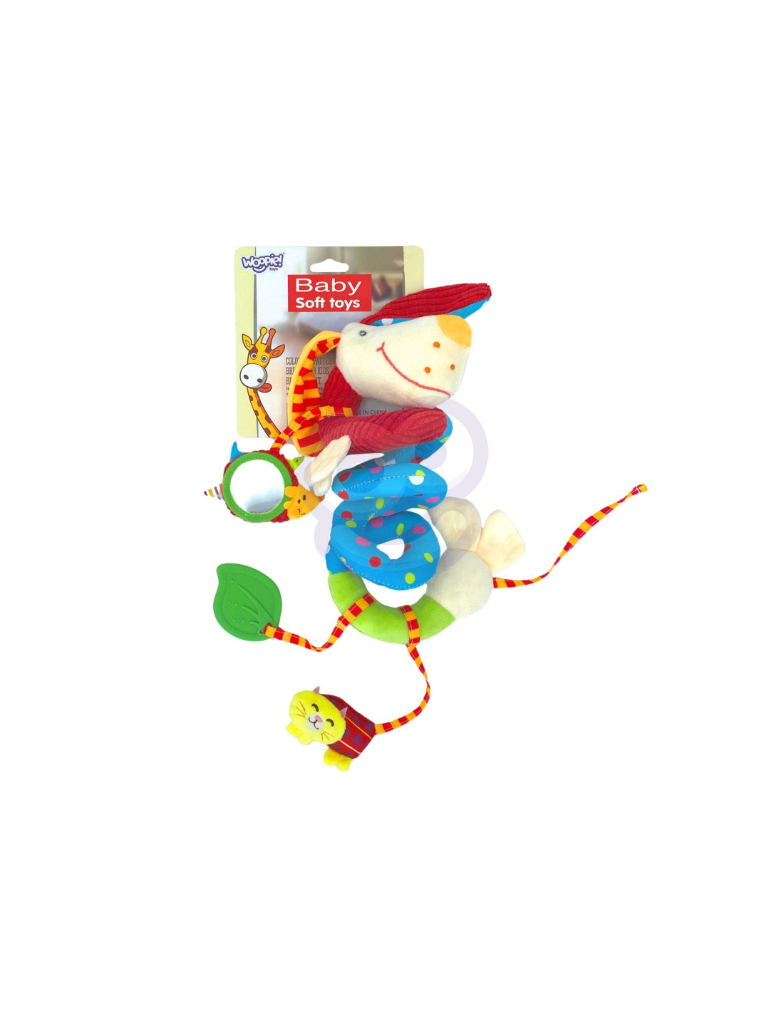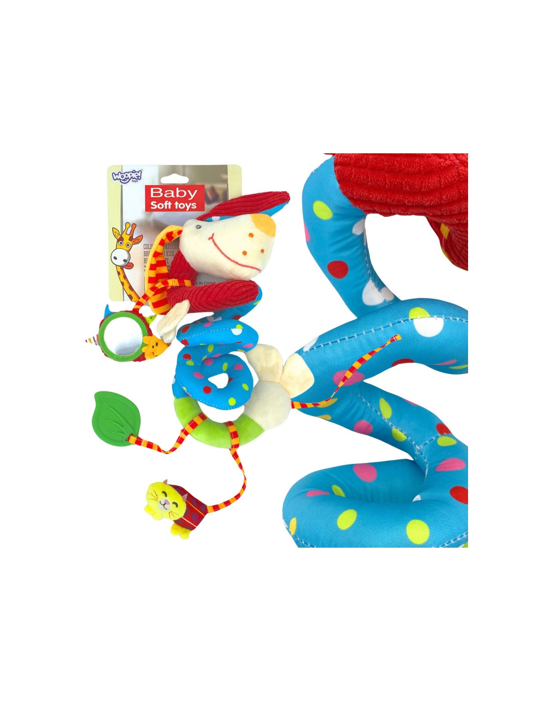 Prekės ženklo WOOPIE BABYpakabukas - tai pastelinių spalvų, spiralės formos pliušinis žaislas. Jis tinka kabinti ant vaikiškos lovytės, vaikiško vežimėlio ar automobilio kėdutės. Žaislas stimuliuoja regos, klausos ir lytėjimo pojūčius. Be to, spiralė padeda lavinti dėmesio įgūdžius. Pagaminta iš minkštos, liesti malonios medžiagos. Puikiai tinka vaikams nuo pirmųjų gyvenimo akimirkų.