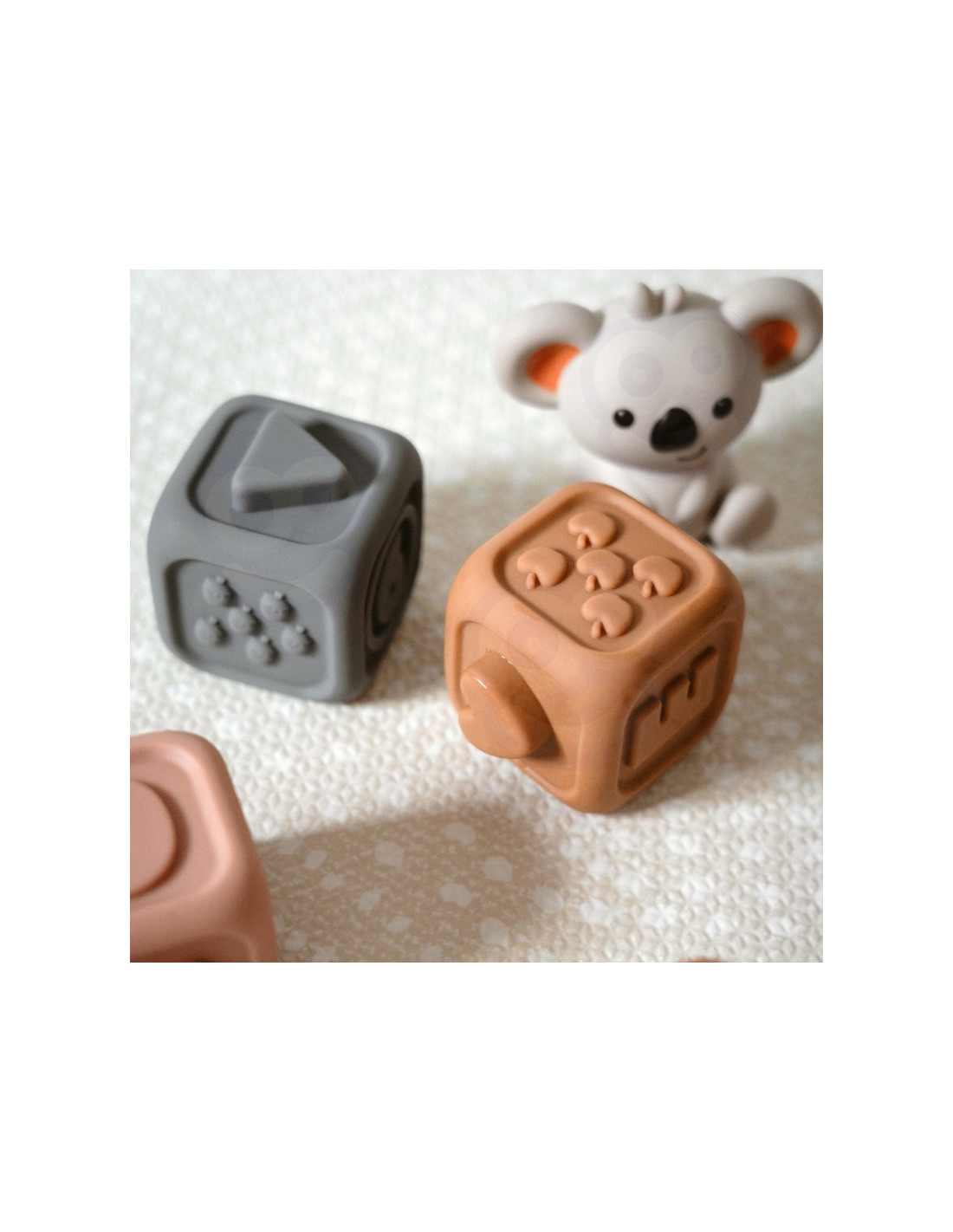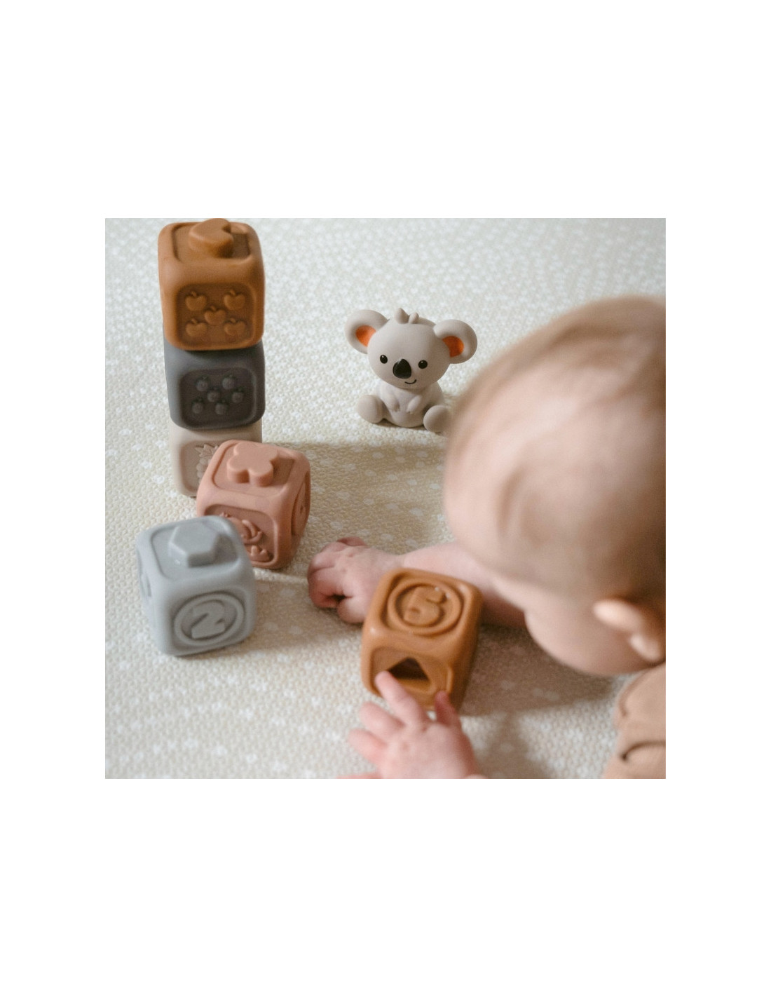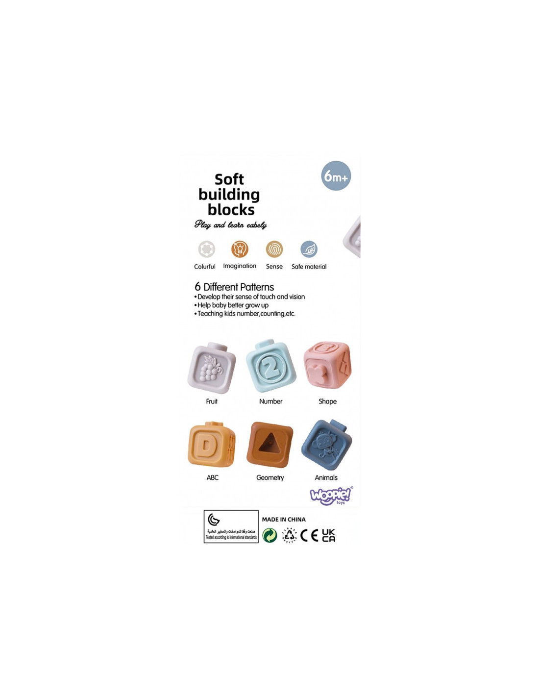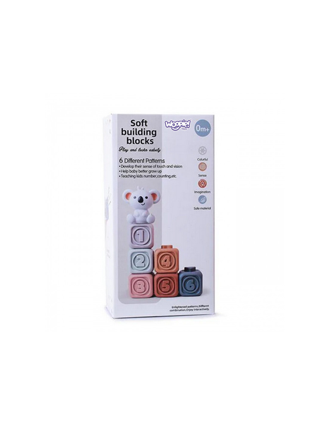 Šis kūrybiškas pastelinių spalvų skaičių kaladėlių rinkinys iš WOOPIE yra idealus pasirinkimas patiems mažiausiems vaikams, suteikiantis daug lavinamųjų ir jutiminių galimybių. Kiekviena iš šešių kaladėlių supažindina mažylius su skaičių pasauliu, kartu lavindama įvairius pojūčius ir įgūdžius. Jutiminiai blokeliai pagaminti iš minkštos, kūdikiui nekenksmingos medžiagos, todėl gali būti naudojami kaip kramtukai dygstant dantukams. Be to, šios universalios kaladėlės taip pat gali lydėti kūdikį vonioje ir suteikti daug džiaugsmo vandenyje. Dėl išgaubtų, didelių skaičių žaislas padeda vaikams lengviau išmokti skaičius pirmą kartą. Žaislas yra universalus, iš jo galima statyti aukštą bokštą, mokytis skaičių, taip pat jį galima naudoti kaip kūdikiui saugų kramtuką.