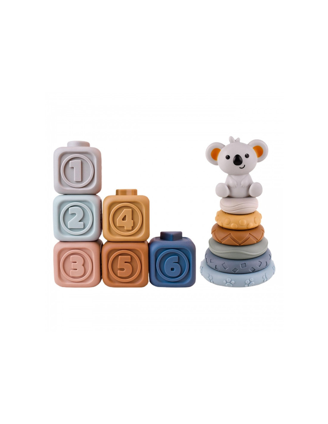 WOOPIE BABY Edukacinis piramidžių rinkinys Sensoriniai blokai 2in1 Dantų krapštukas Skaičiai