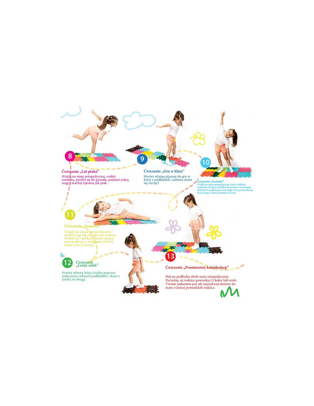Kilimėlis leidžia įdomiai žaisti jūsų vaikui, kuris gali atlikti iki 19 pratimų (pvz: "Saulės pasveikinimas", "mažojo kareivėlio" pratimą, "klasės žaidimą" ir "mažąjį genijų")