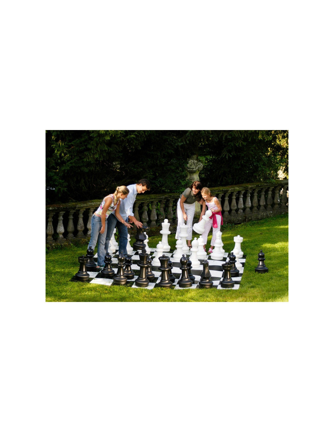 Aukštos kokybės sodo šachmatai lauko žaidimams, tinkami žaisti lauke bet kurioje vietoje, kur yra daug erdvės. Didelė plastikinė sodo šachmatų lenta (pridedama) taip pat puikiai papildo sodo šachmatų rinkinį.