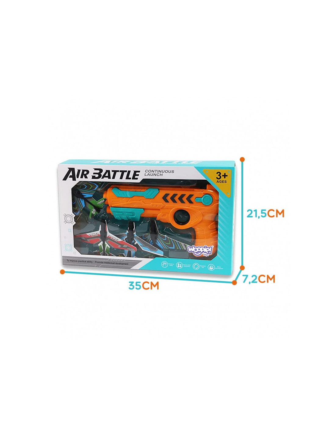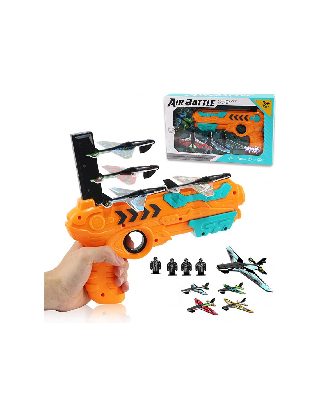 WOOPIE lėktuvų paleidimo pistoletas yra tobulas žaislas, kuris pradžiugins kiekvieną vaiką. Jis leidžia mažiesiems ne tik smagiai praleisti laiką , bet ir pagerinti taikymąsi bei koordinaciją . Žaislo valdymas yra neįtikėtinai paprastas – tiesiog užtaisykite paleidimo įrenginį, judindami lėktuvą palei pistoletą, kol išgirsite būdingą „spragtelėjimą“. Tada patraukite juodą slankiklį, paspauskite gaiduką ir stebėkite , kaip lėktuvas pakyla į orą , įveikdamas iki 8 metrų atstumą! Rinkinį sudaro keturi putplasčio lėktuvai ir keturi taikiniai , kuriuos galima numušti. Paleidimo įrenginys yra lengvas, nešiojamas ir jam nereikia baterijų , todėl jį galima naudoti namuose, sode ar kelionėje. Puiki dovanos idėja – spalvinga pakuotė dar labiau pabrėžia unikalų šio žaislo charakterį . Šis žaislas garantuoja valandų valandas aktyvaus ir jaudinančio žaidimo!