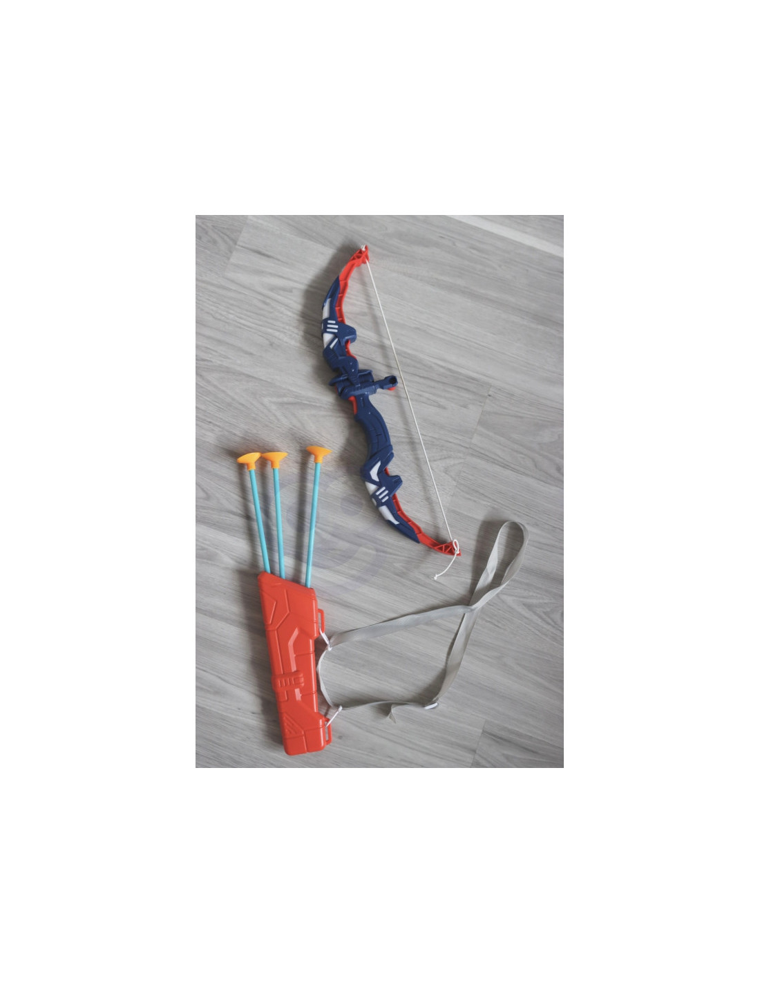 - - komplektą sudaro lankas , strėlinė strėlėms laikyti su dirželiu per petį ir 3 strėlės su siurbtuku gale,