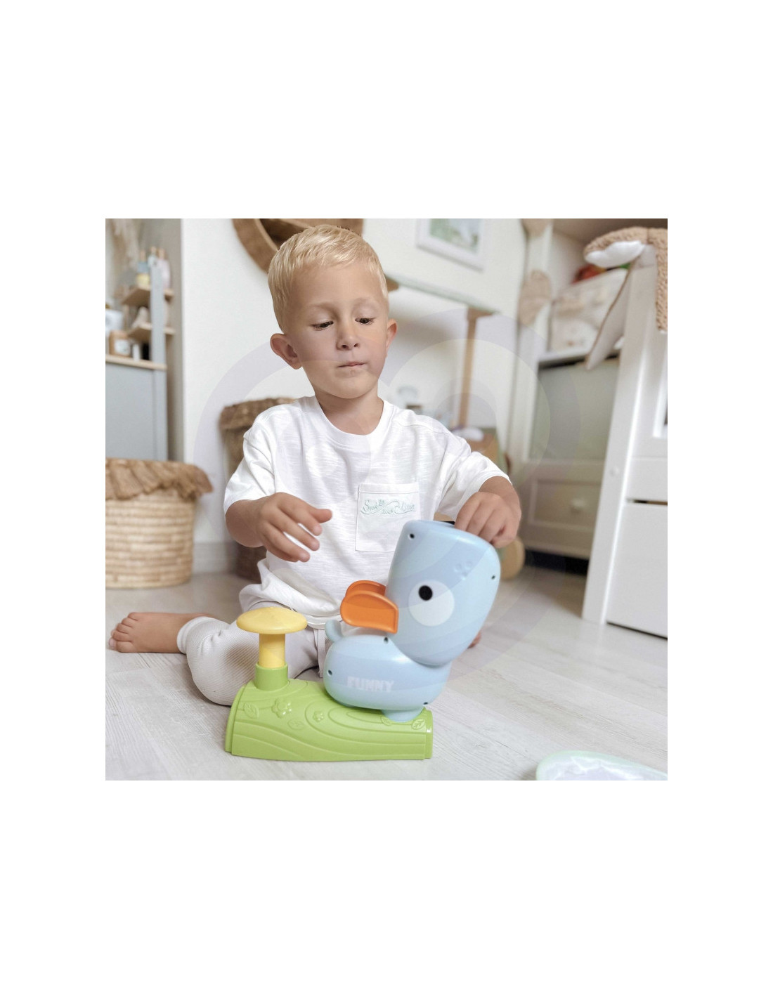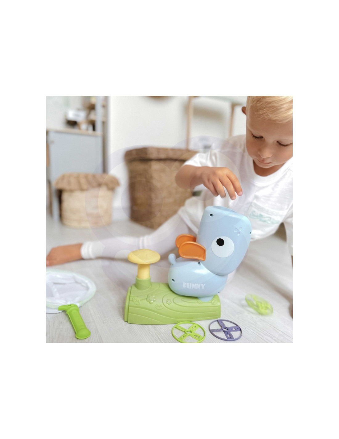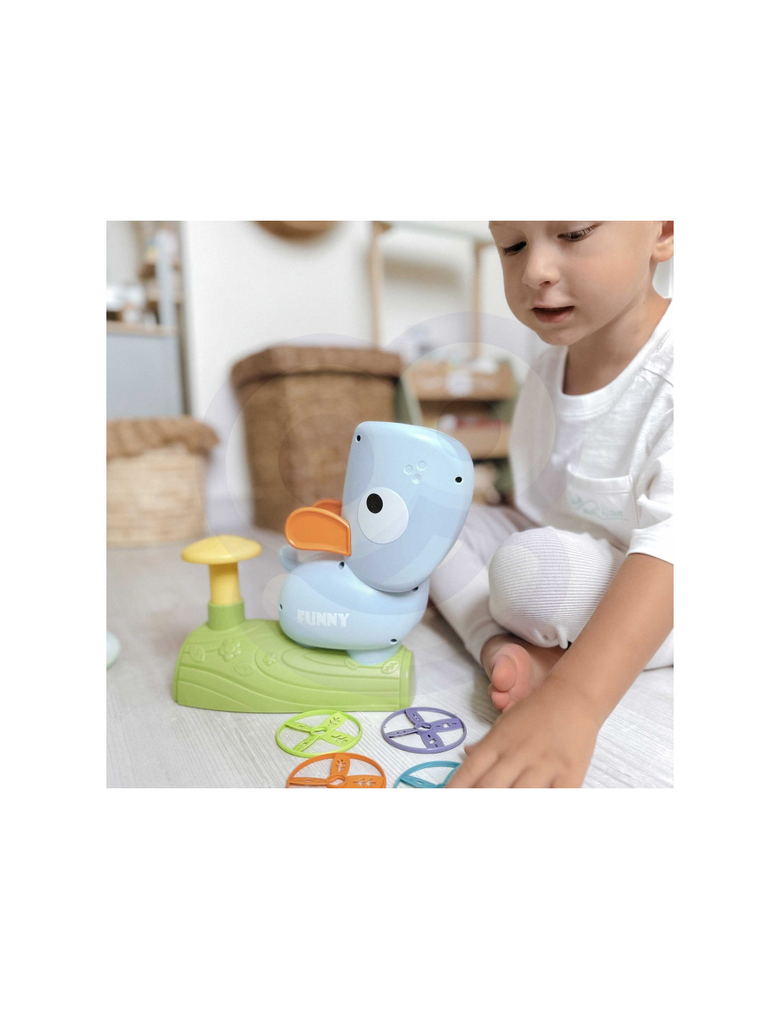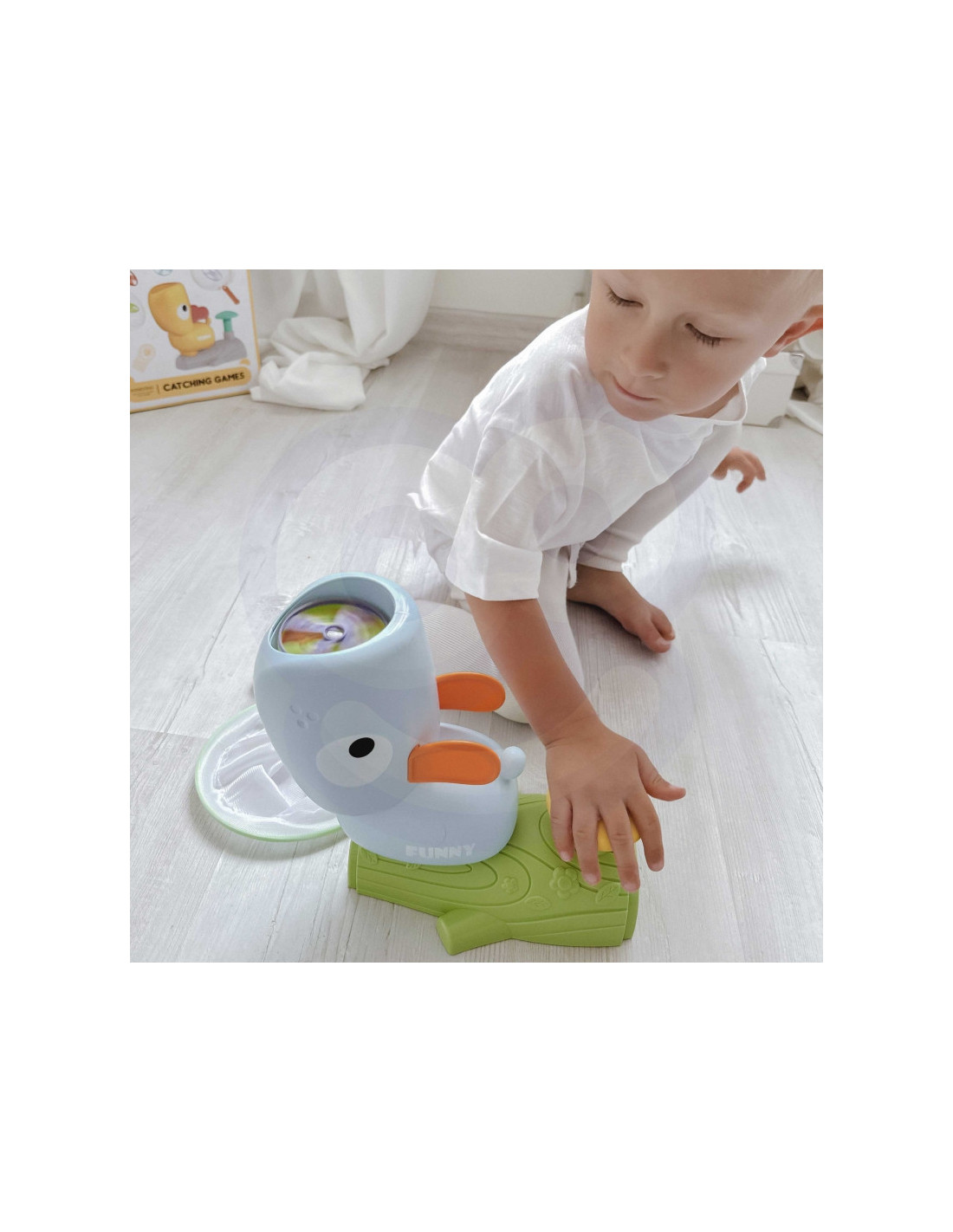WOOPIE įgūdžių žaidimas „Pagauk frisbį šunį – katapulta“ – tai puikus būdas visai šeimai smagiai praleisti laiką kartu! Šis žaidimas reikalauja miklumo, susikaupimo ir geros motorinės koordinacijos. Žaidėjai turi pagauti šuns metamą diską . Kuo stipriau paspausite mygtuką, tuo aukščiau diskas skris. Tai daro žaidimą dar įdomesnį. Šis gaminys puikiai tinka tiek vaikams, tiek suaugusiems . Žaislas yra saugus ir pridedami akiniai su apsauginiais stiklais, kurie žaidimo metu apsaugo akis ir veidą.
