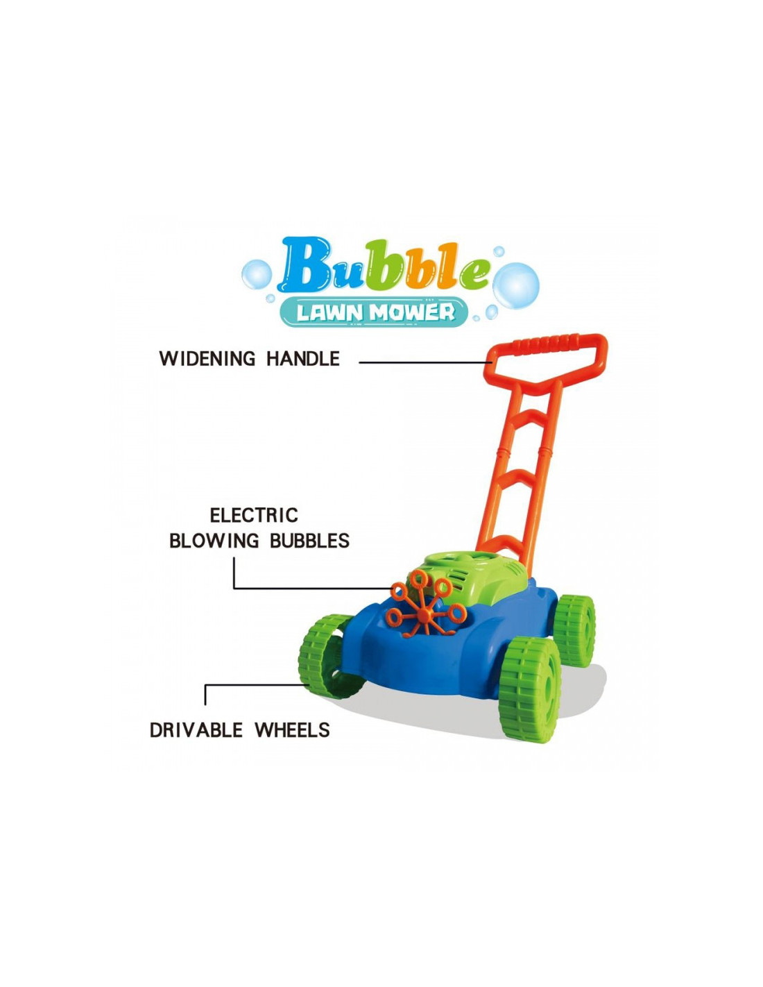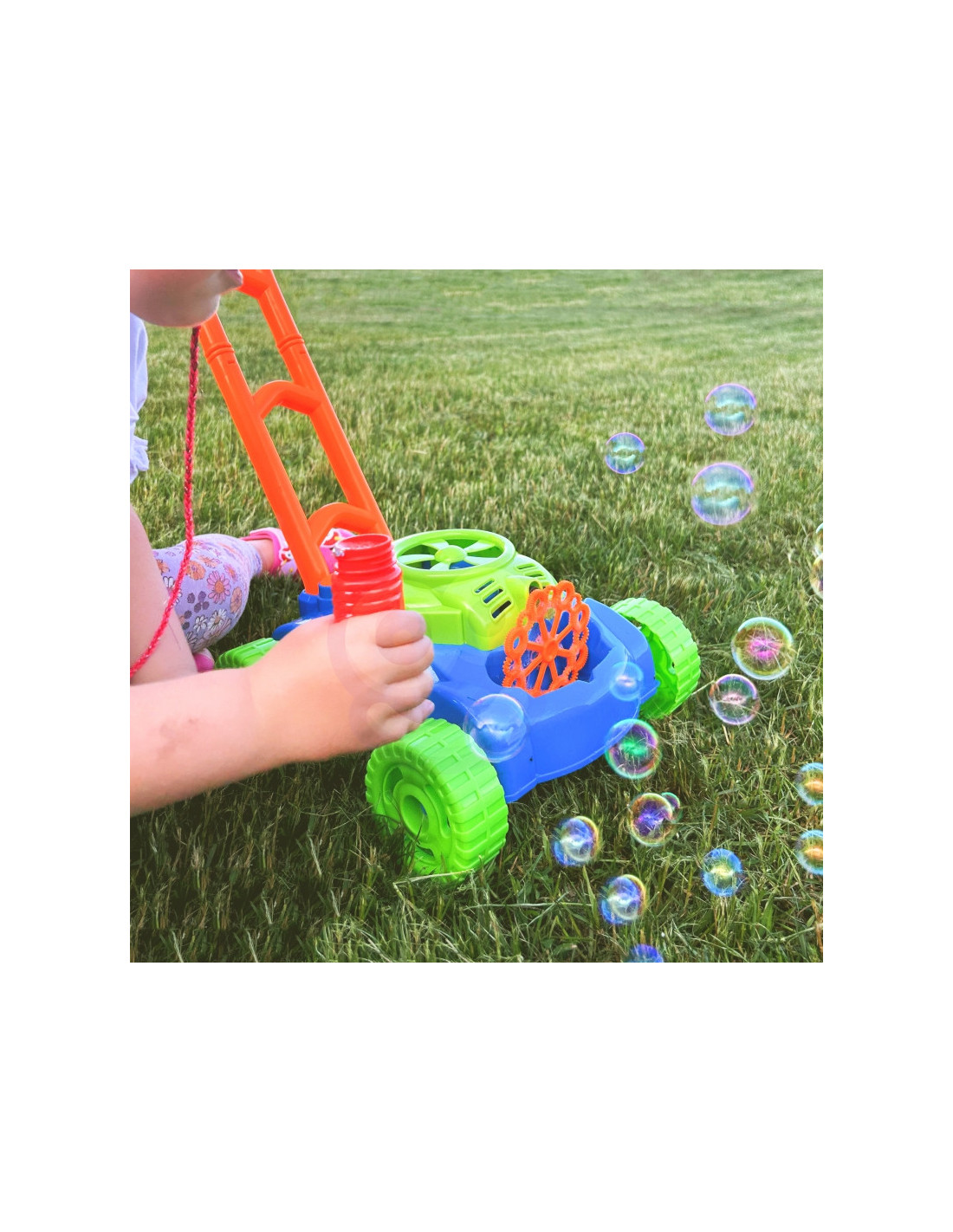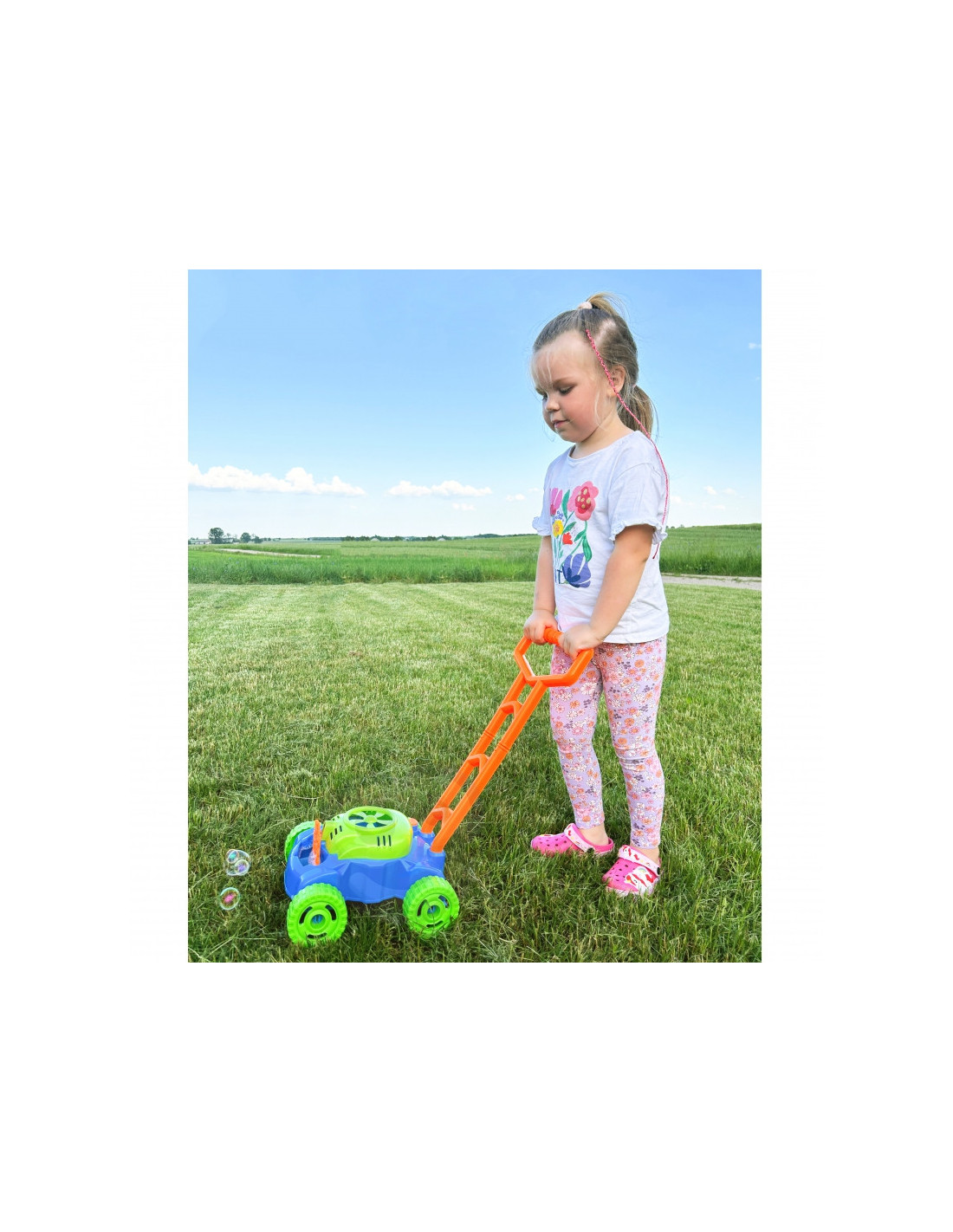 Burbulai pučiami automatiškai . Mažas ventiliatorius, esantis ant vejapjovės variklio korpuso, sukuria oro srovę , kuri nukreipiama į aštuonis besisukančius žiedus. Šie žiedai panardinami į burbulus gaminančio skysčio indą ir po vieną praleidžiami po mažu antgaliu. Tokiu būdu burbulai pučiami nuolat. Dėl aštuonių žiedų žaislas vienu metu sukuria daug burbulų. Papildomas vejapjovės privalumas – jos skleidžiami garsai . Girdėti garsai yra muilo burbulai ir animacinio filmuko melodija. Ant galinių ratų yra plastikiniai skirtukai , kurie barška važiuojant , imituodami tikros mašinos garsą. Ši pasakiškai spalvinga vejapjovė siūlo begalę pramogų, skatina kūrybiškumą ir lavina rankų miklumą . Galite būti tikri , kad jūsų mažylis neturės laiko nuobodžiauti.