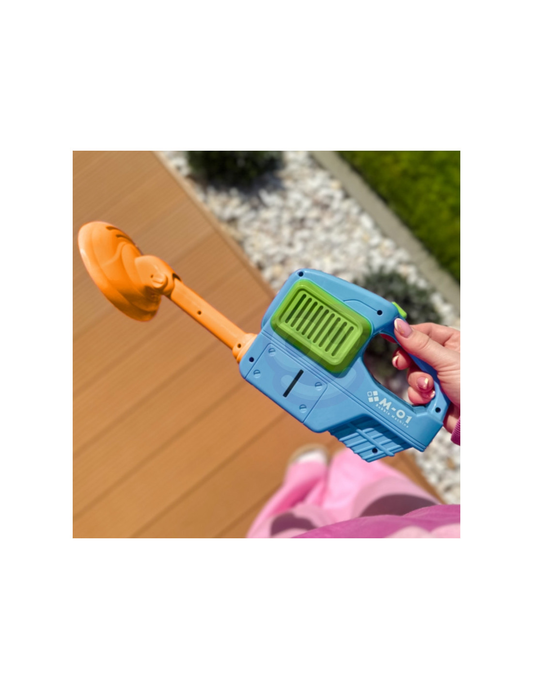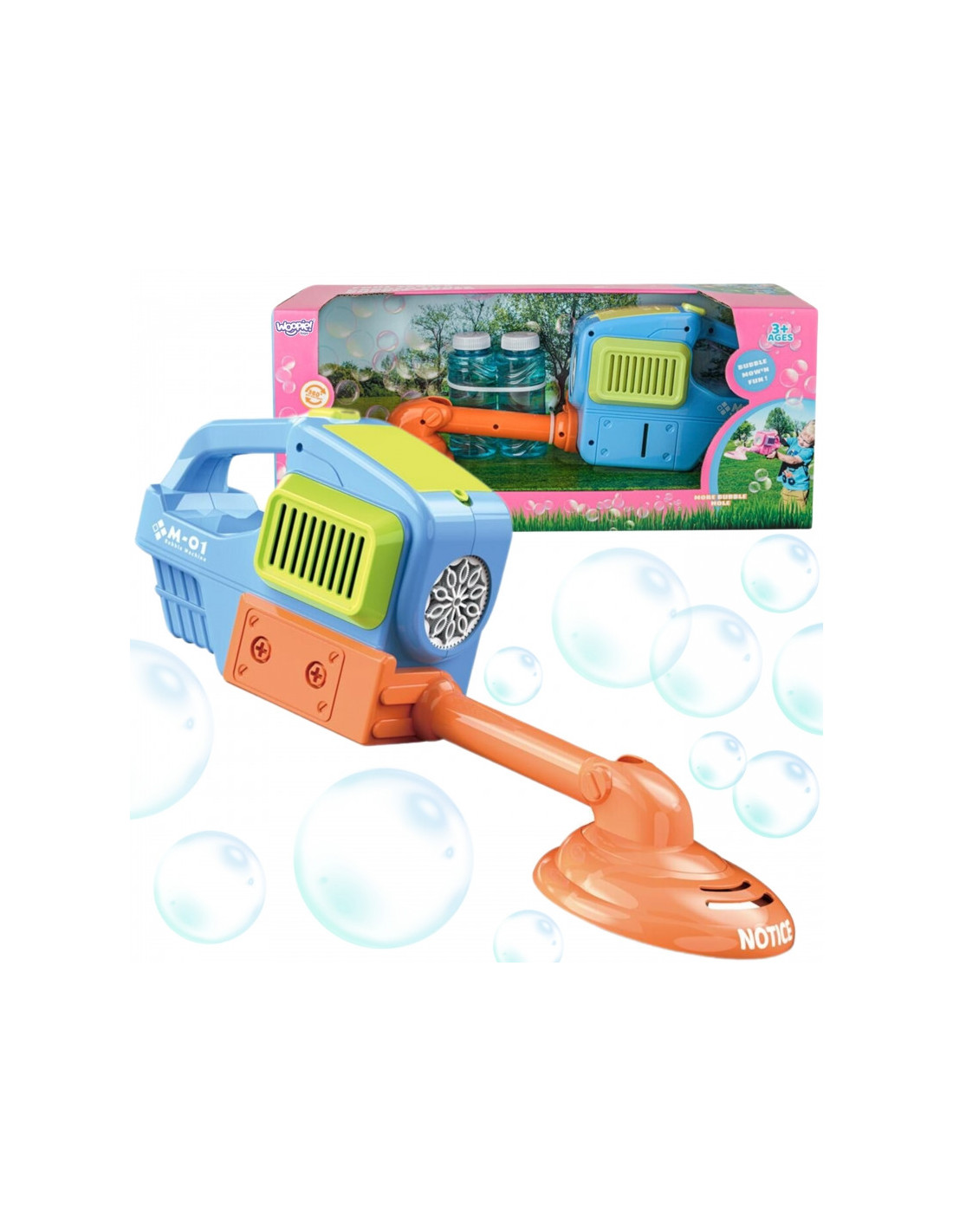 „WOOPIE“ burbulų pistoletas – vejapjovė – tai nepaprastas prietaisas, kuris pakels linksmybes į visiškai naują lygį. Tai ne tik žaislas, bet ir tikras atrakcionas, puikiai tinkantis bet kokiam vakarėliui, sodui ar tiesiog popietei, praleistai lauke. Dėl novatoriško dizaino ir unikalių vaizdinių efektų jis tikrai taps tiek vaikų, tiek suaugusiųjų mėgstamiausiu daiktu, suteikdamas daugybę smagių ir nepamirštamų akimirkų. Vejapjovės priedas yra nuimamas, todėl akimirksniu galite ją paversti stilinga burbulų mašina . Tikroji magija prasideda įjungus pistoletą. Anga, iš kurios kyla burbulai, taip pat sukasi 360 laipsnių . Šis judesys sukuria neįtikėtiną efektą, sustiprindamas vaizdinį potyrį ir siųsdamas burbulus ore netikėtomis kryptimis.