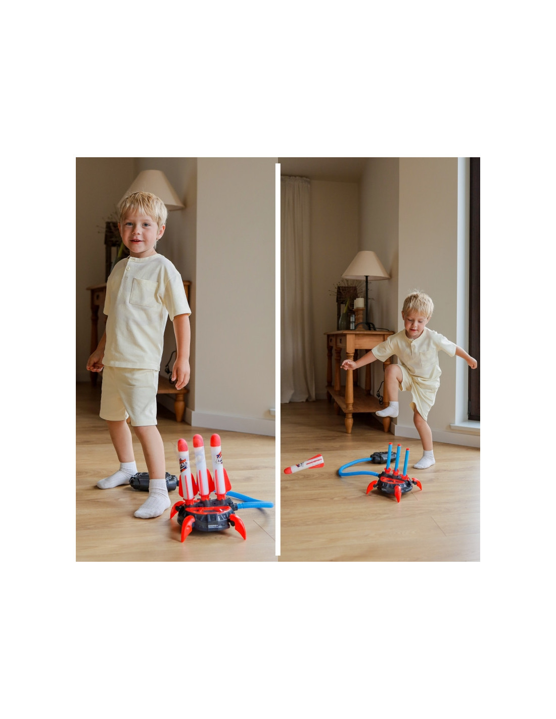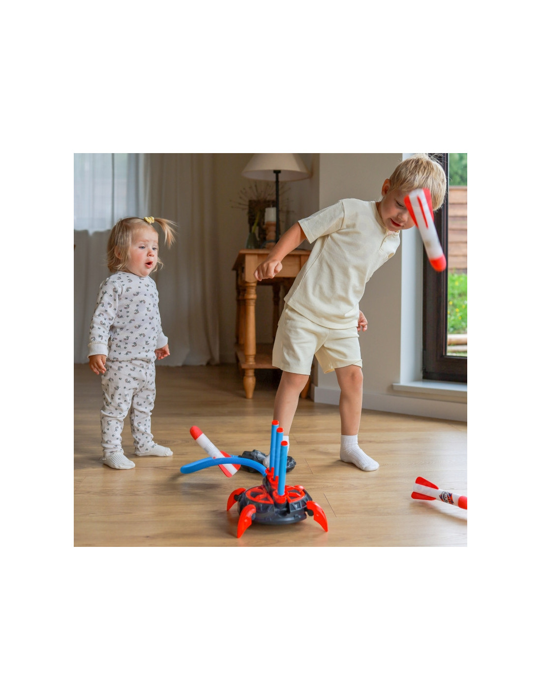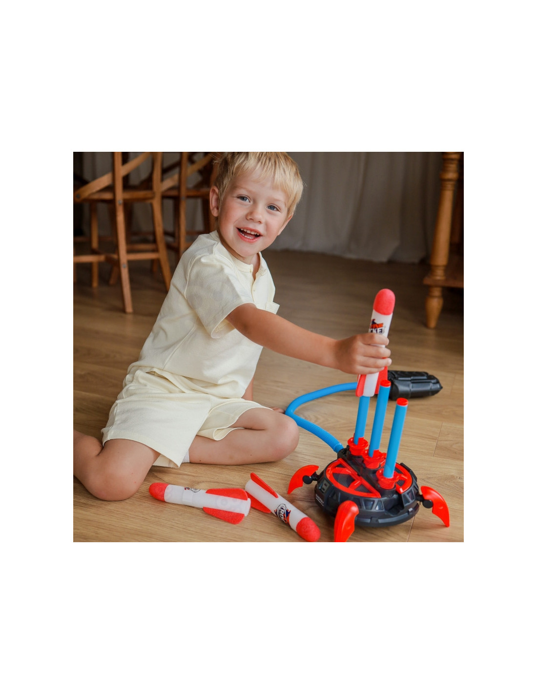Tapk mažuoju kosmoso tyrinėtoju ir smagiai leisk raketas iki 30 metrų į orą! Šis dinamiškas rinkinys su paleidimo įrenginiu ir putplasčio raketomis – puikus būdas aktyviai leisti laiką lauke – saugiai ir kupinai įspūdžių!