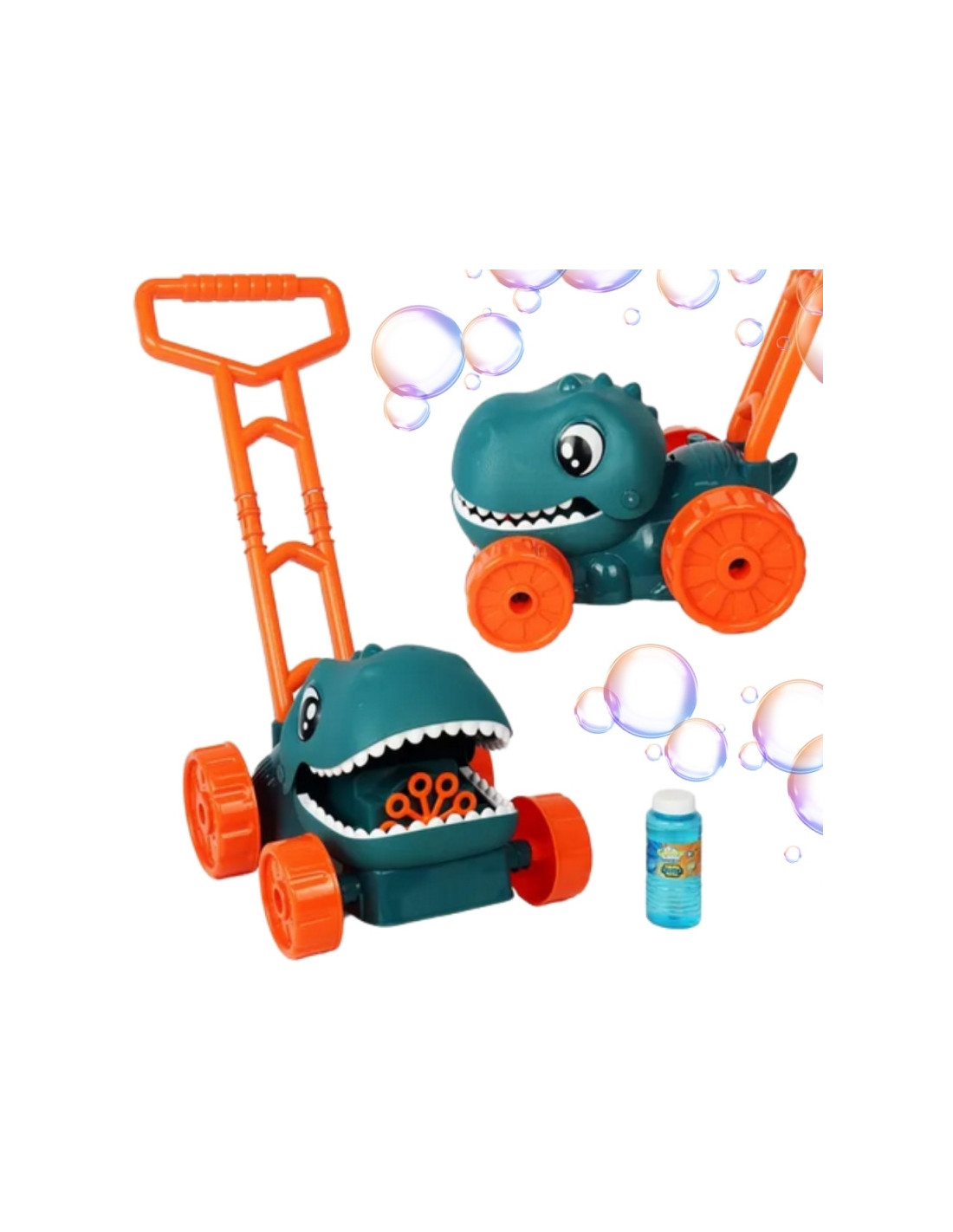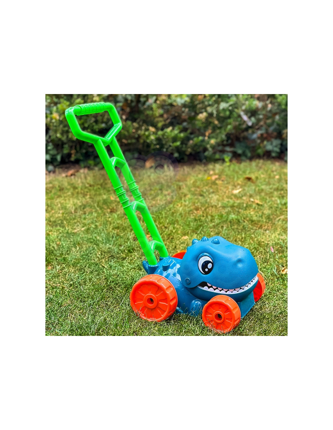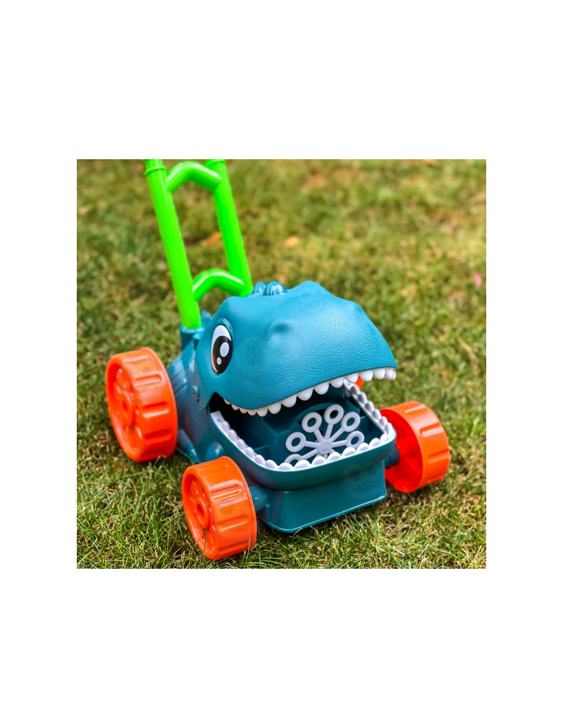 Atraskite magišką burbulų ir dinozaurų pasaulį! Mūsų Woopie “ dinozaurų burbulinė žoliapjovė puikiai tiks bet kokiai veiklai sode – ji apjungia judėjimą, linksmybes ir priešistorinius nuotykius viename!