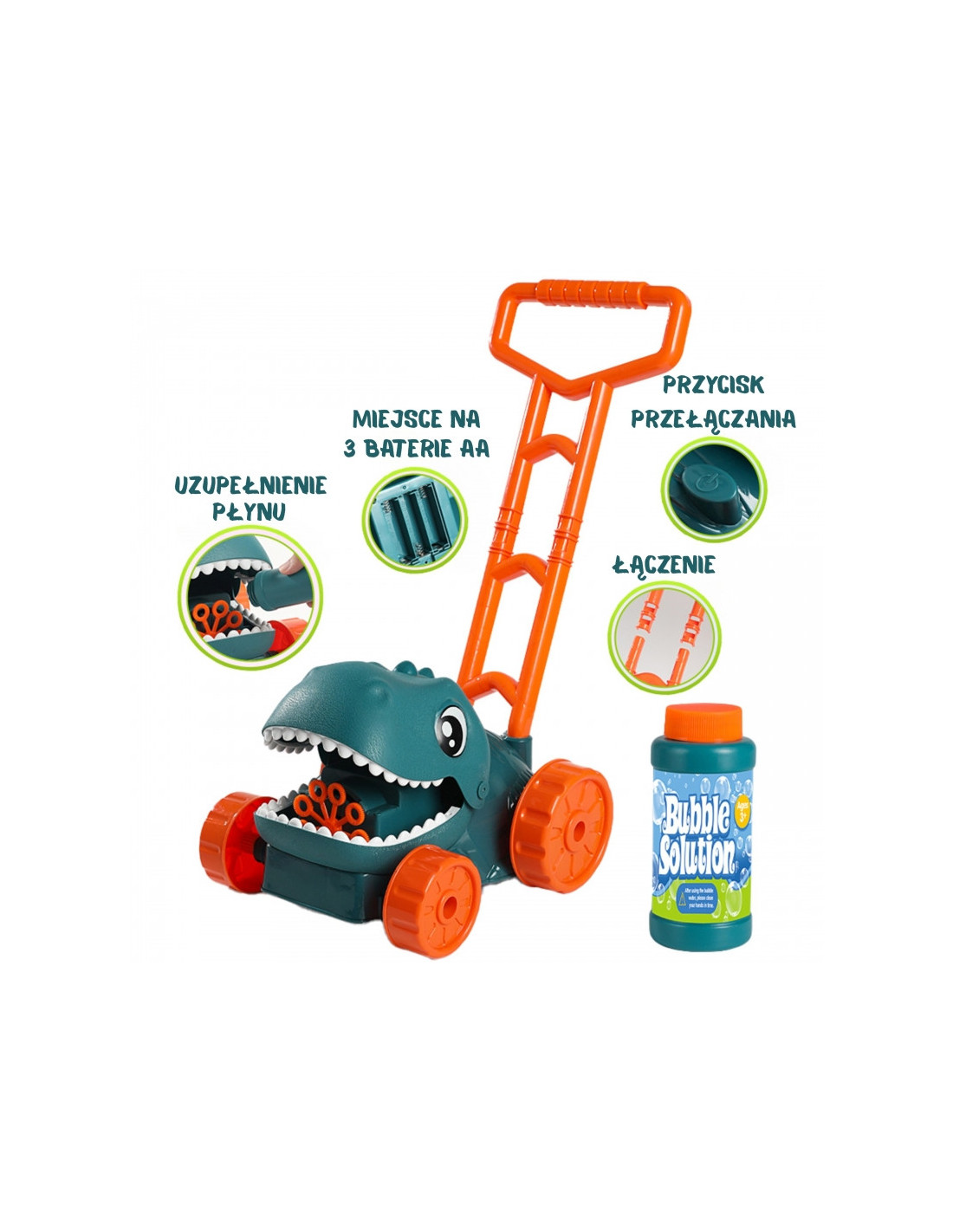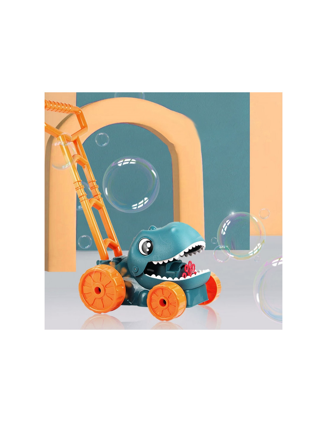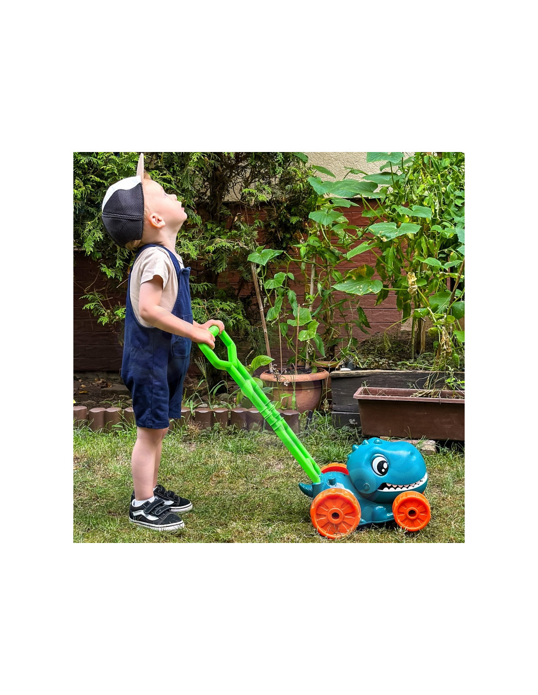 Atraskite magišką burbulų ir dinozaurų pasaulį! Mūsų Woopie “ dinozaurų burbulinė žoliapjovė puikiai tiks bet kokiai veiklai sode – ji apjungia judėjimą, linksmybes ir priešistorinius nuotykius viename!
