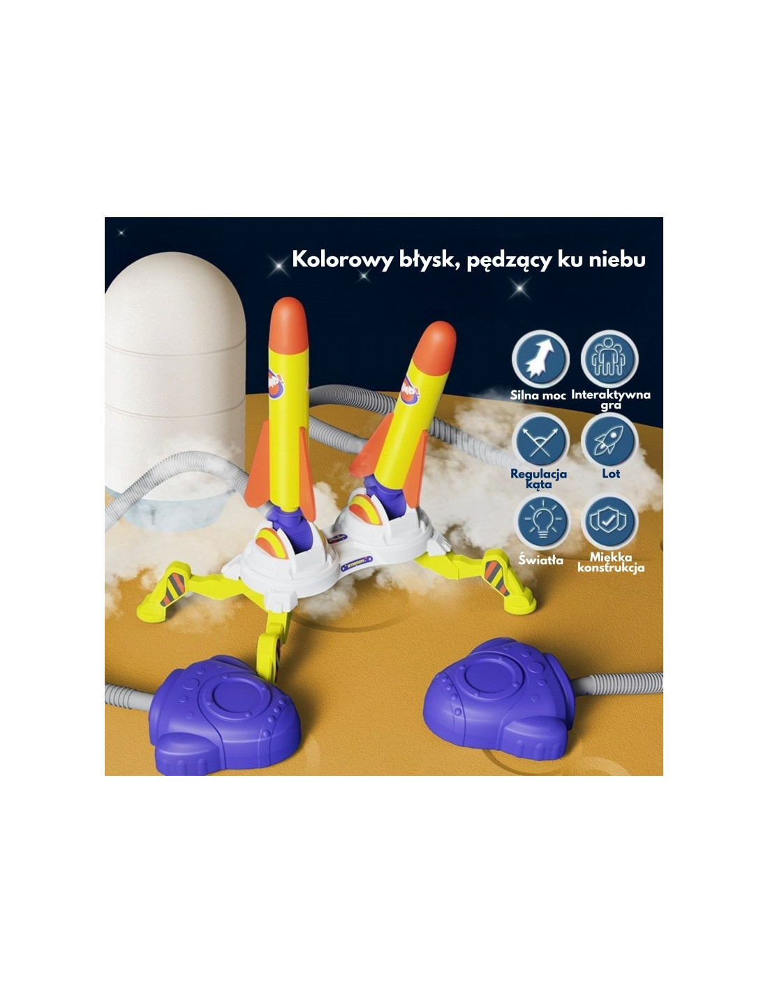 Woopie “ putplasčio raketų paleidimo įrenginys garantuotai suteiks daug džiaugsmo vaikams, svajojantiems apie kosmoso nuotykius! Dėl dvigubo paleidimo įrenginio ir minkštų putplasčio raketų mažyliai gali varžytis raketų paleidimuose nesijaudindami dėl saugumo. Šios raketos, pagamintos iš minkštų putų, yra saugios žaisti tiek viduje, tiek lauke! Tiesiog paspauskite pompą koja, kad paleistumėte raketą – garantuota daugybė pramogų.