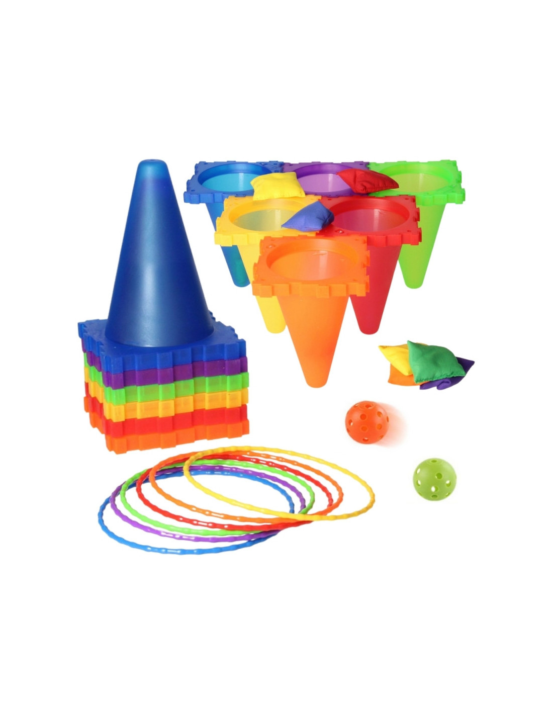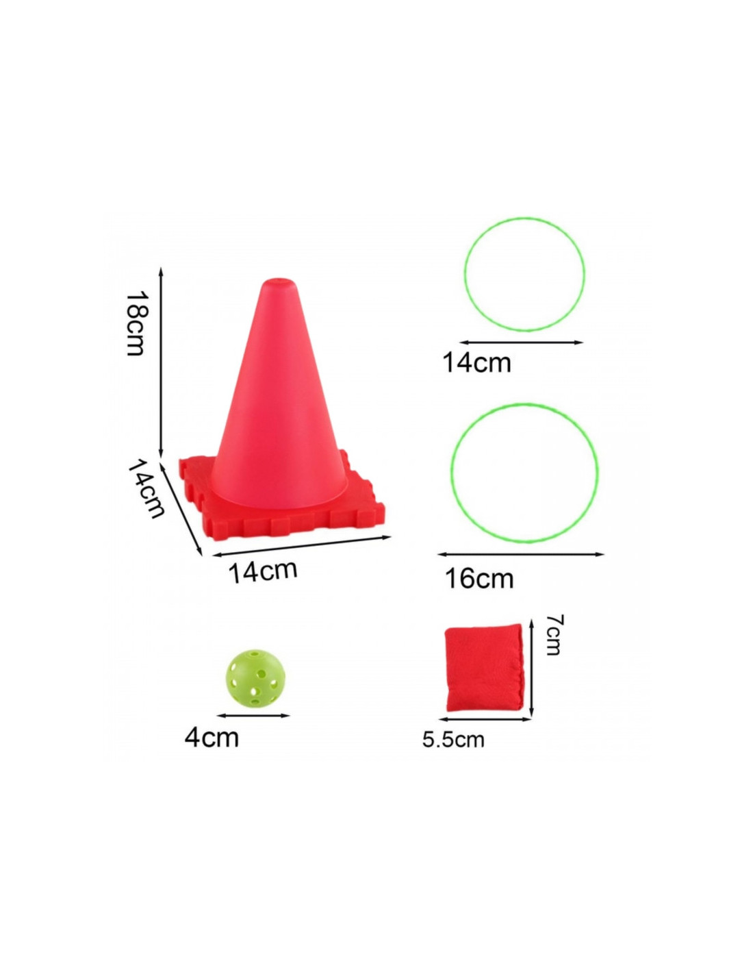 Woopie 3 viename sodo žaidimų rinkinys – tai kompaktiškas pramogų rinkinys visai šeimai. Kūginiai kūgiai, lengvi lankai, minkšti krepšiai ir plastikiniai kamuoliai leidžia sukurti daugybę varžybų: šaudymą į taikinius, kūgių ringą, slalomą, kliūčių ruožus ir komandines lenktynes. Komponentai yra lengvi, patvarūs ir saugūs – idealiai tinka namams, sodui, darželiui ir sportinei veiklai.