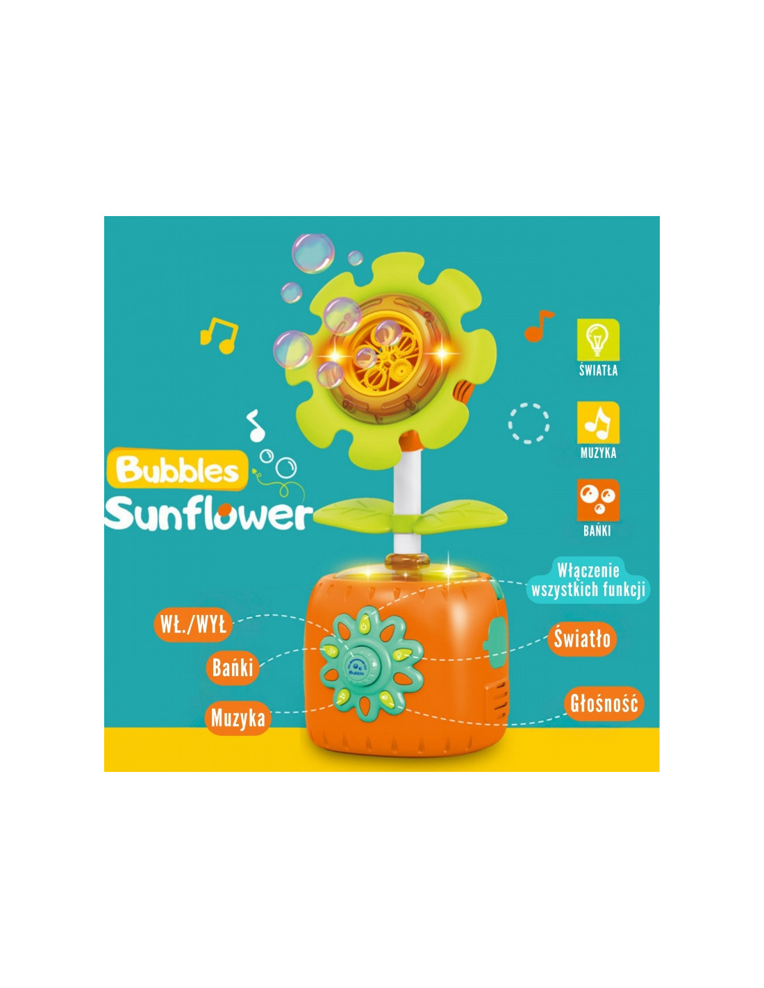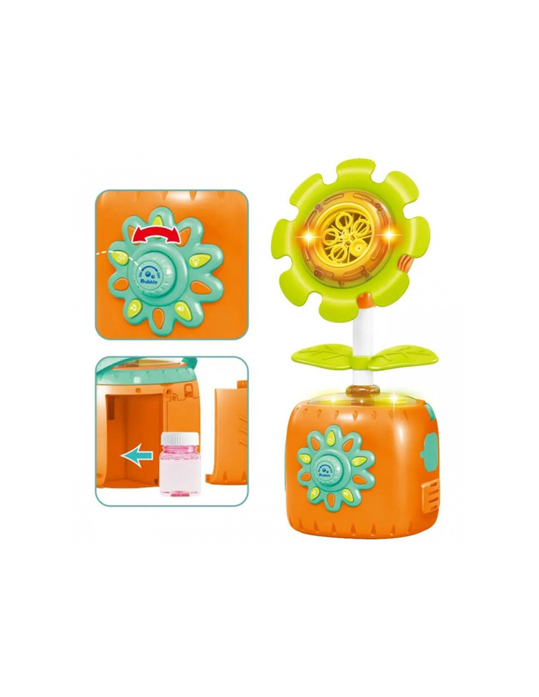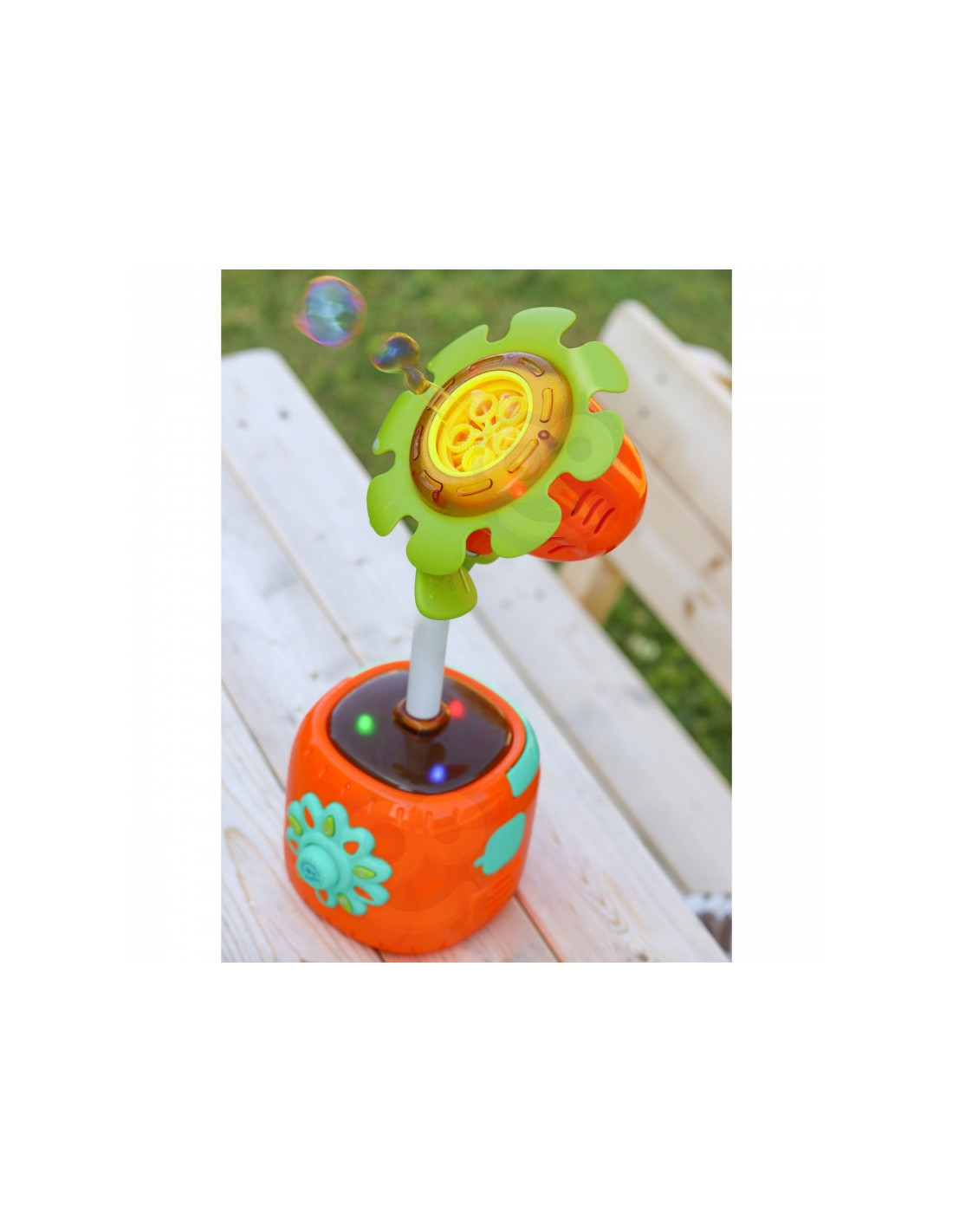 - - Automatinis burbulų gamyba – saulėgrąža pati išskiria daug burbulų, sukurdama magišką atmosferą.