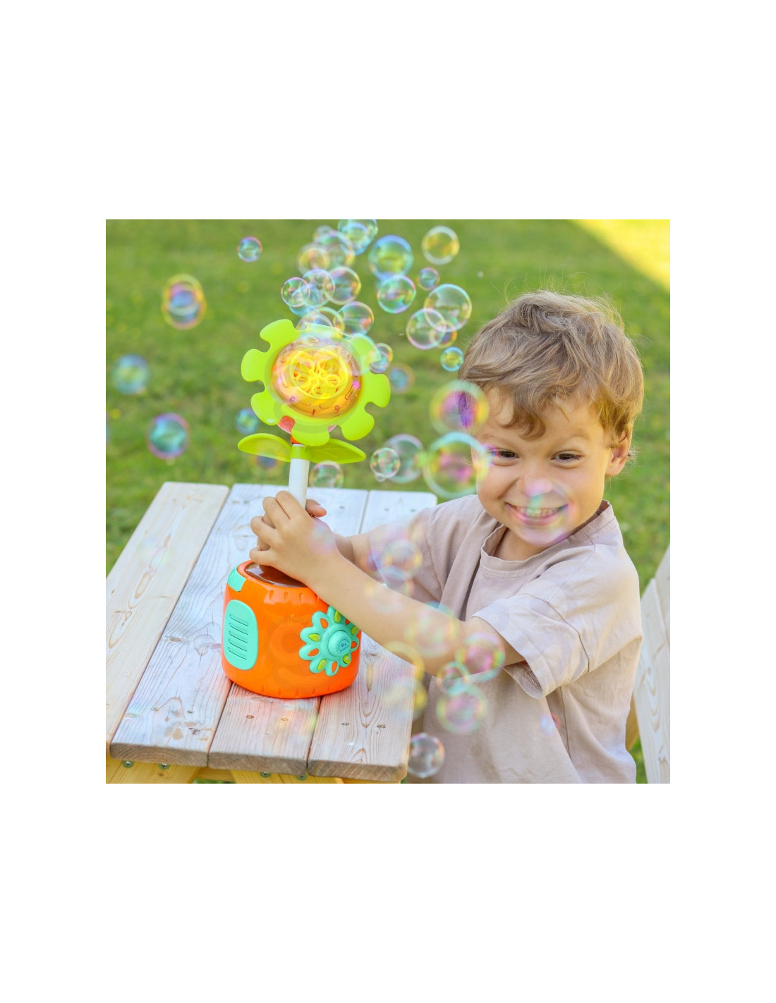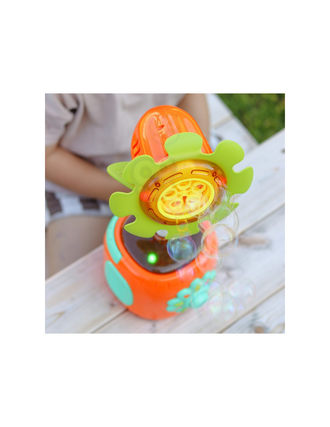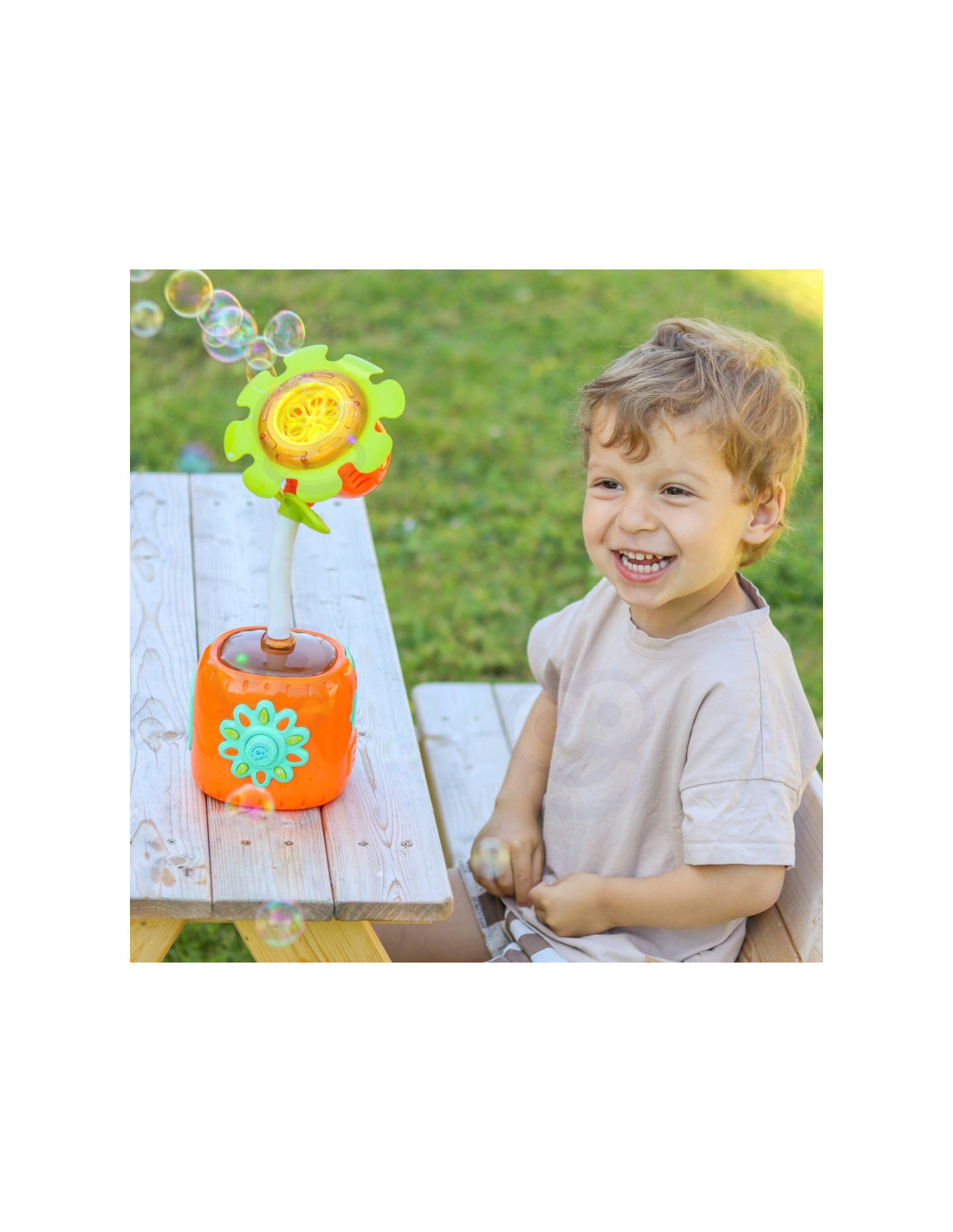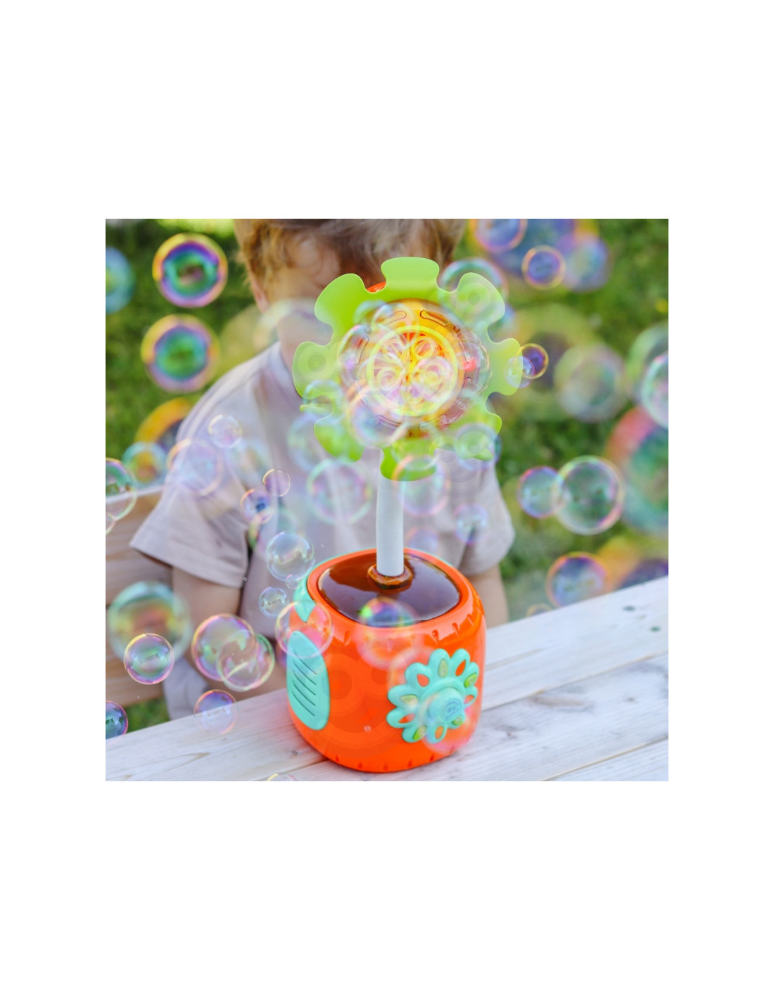 - - Automatinis burbulų gamyba – saulėgrąža pati išskiria daug burbulų, sukurdama magišką atmosferą.