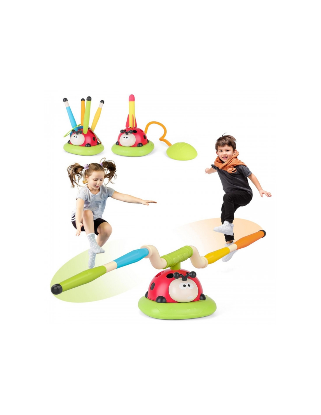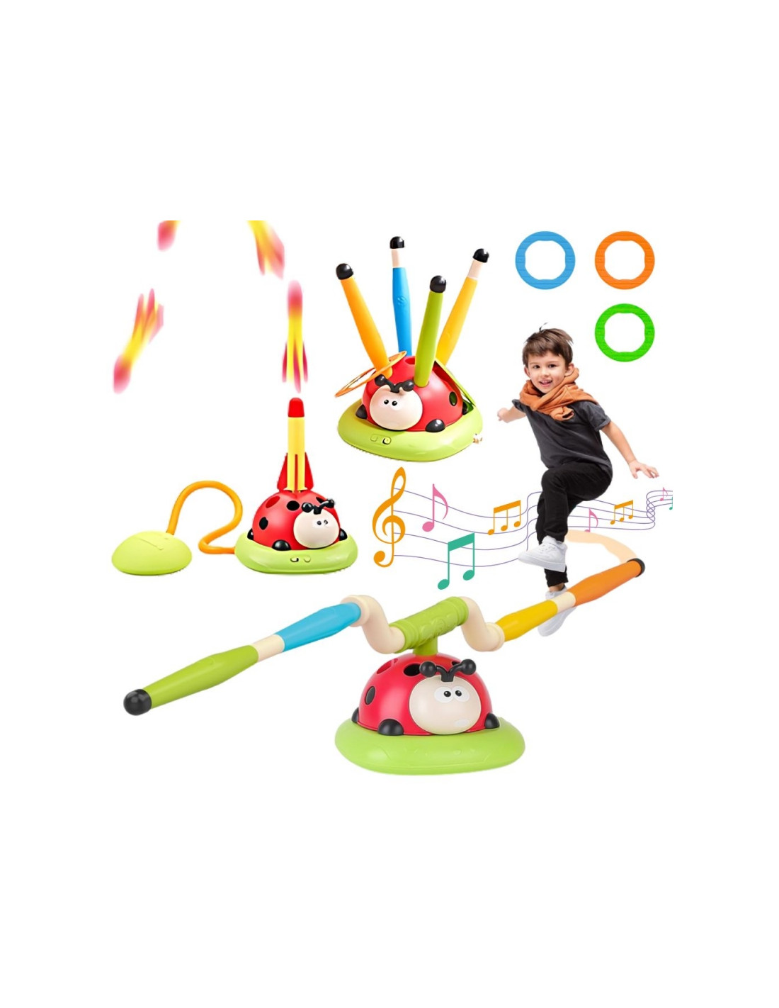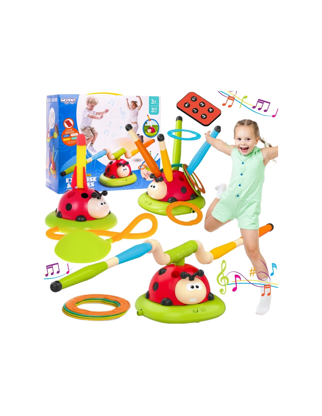 WOOPIE prekės ženklo žaislas "3in1 Interactive Ladybug" yra tikras hitas – jame dera interaktyvi šokinėjimo virvė, raketų paleidimo įrenginys ir arkadinis žiedų mėtymo žaidimas.