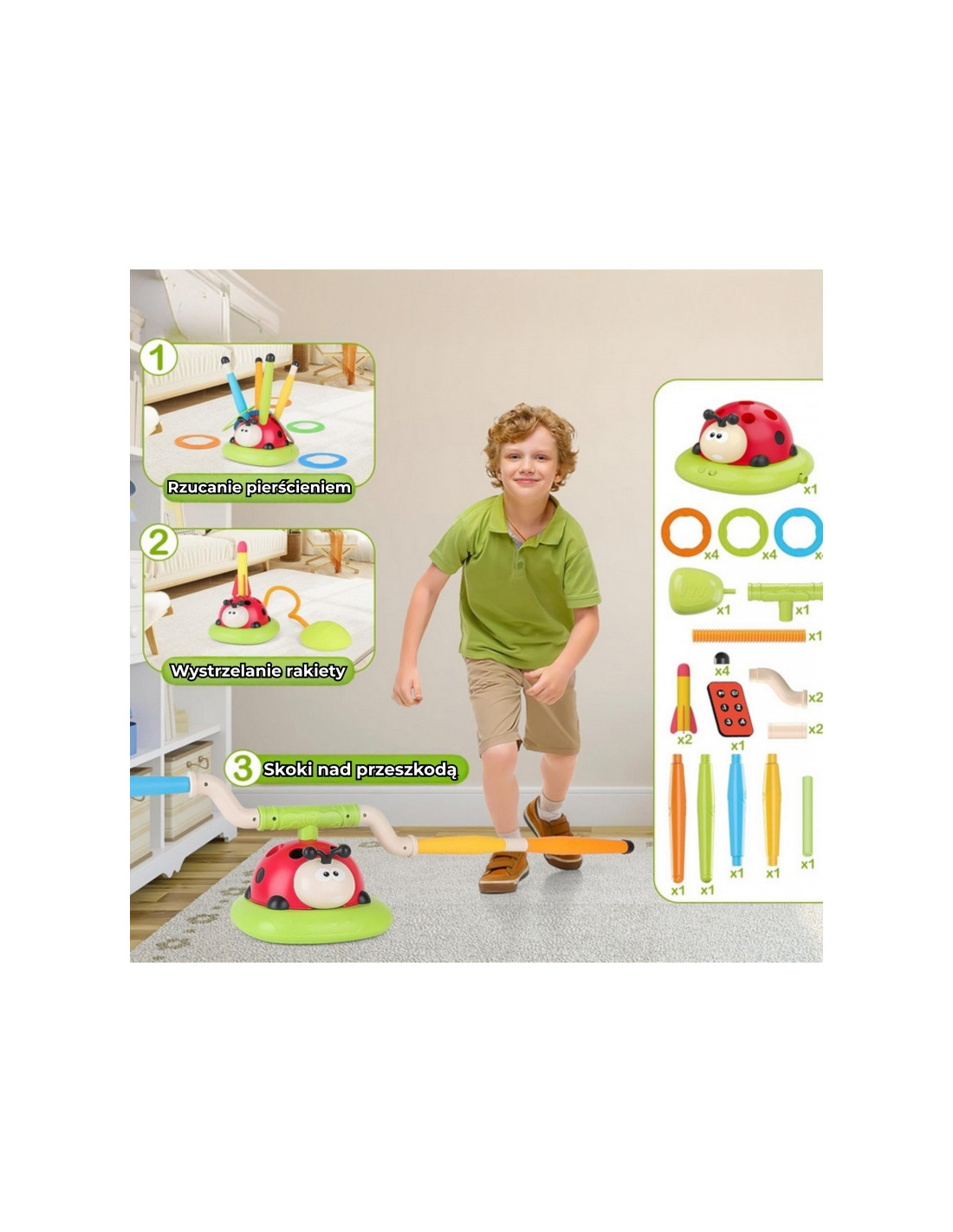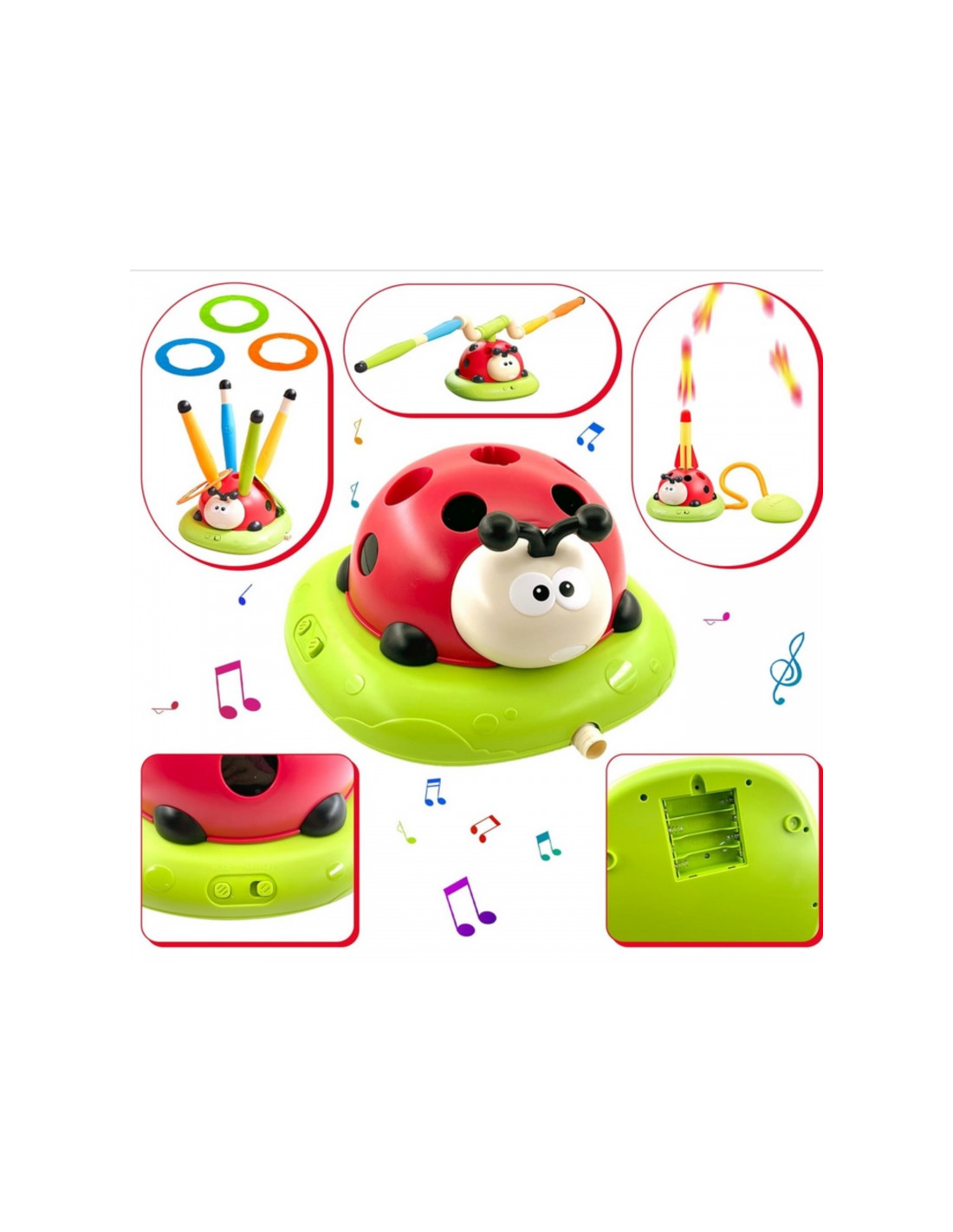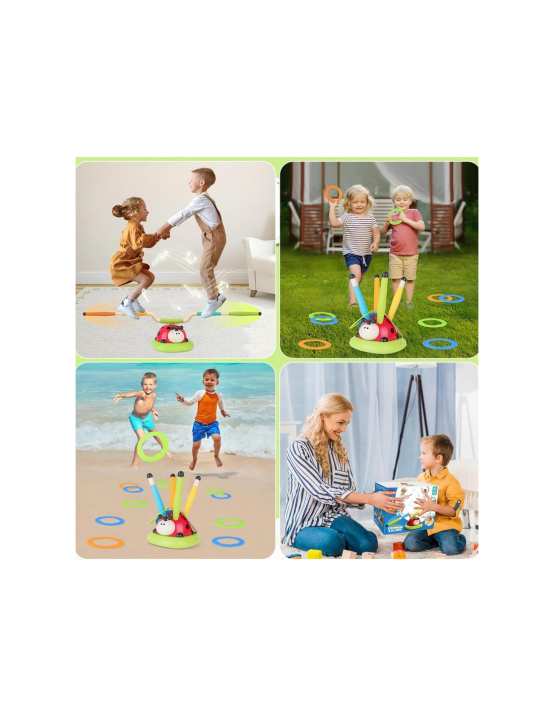 WOOPIE prekės ženklo žaislas "3in1 Interactive Ladybug" yra tikras hitas – jame dera interaktyvi šokinėjimo virvė, raketų paleidimo įrenginys ir arkadinis žiedų mėtymo žaidimas.