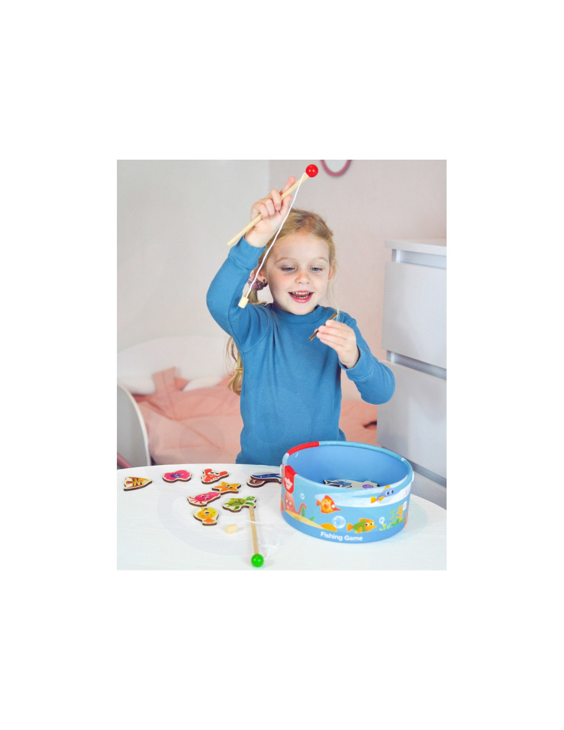 Žaislų rinkinį „TOOKY TOY“ sudaro 22 gyvūnų figūrėlės su įmontuotais magnetais. Dvi medinės meškerės ir povandeninis kibiras suteiks valandų valandas pramogų. Žaidimas įdomus tiek vienam asmeniui, tiek vaikų grupei. Viskas pagaminta iš lakuotos medienos ir nudažyta netoksiškais ryškių spalvų dažais, kurie patiks bet kuriam vartotojui ir suteiks daug džiaugsmo. Žaidimas lavina motorinę koordinaciją ir lavina regimąją-motorinę koordinaciją, taip pat moko kantrybės ir susikaupimo. Meškerės rankose, laikas pradėti medžioti!