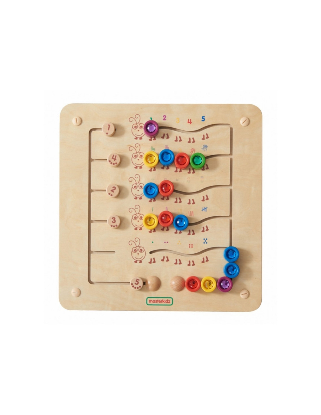 MASTERKIDZ spalvingi vikšrai: mokymosi skaičiai ir kiekiai - Montessori edukacinė sieninė lenta