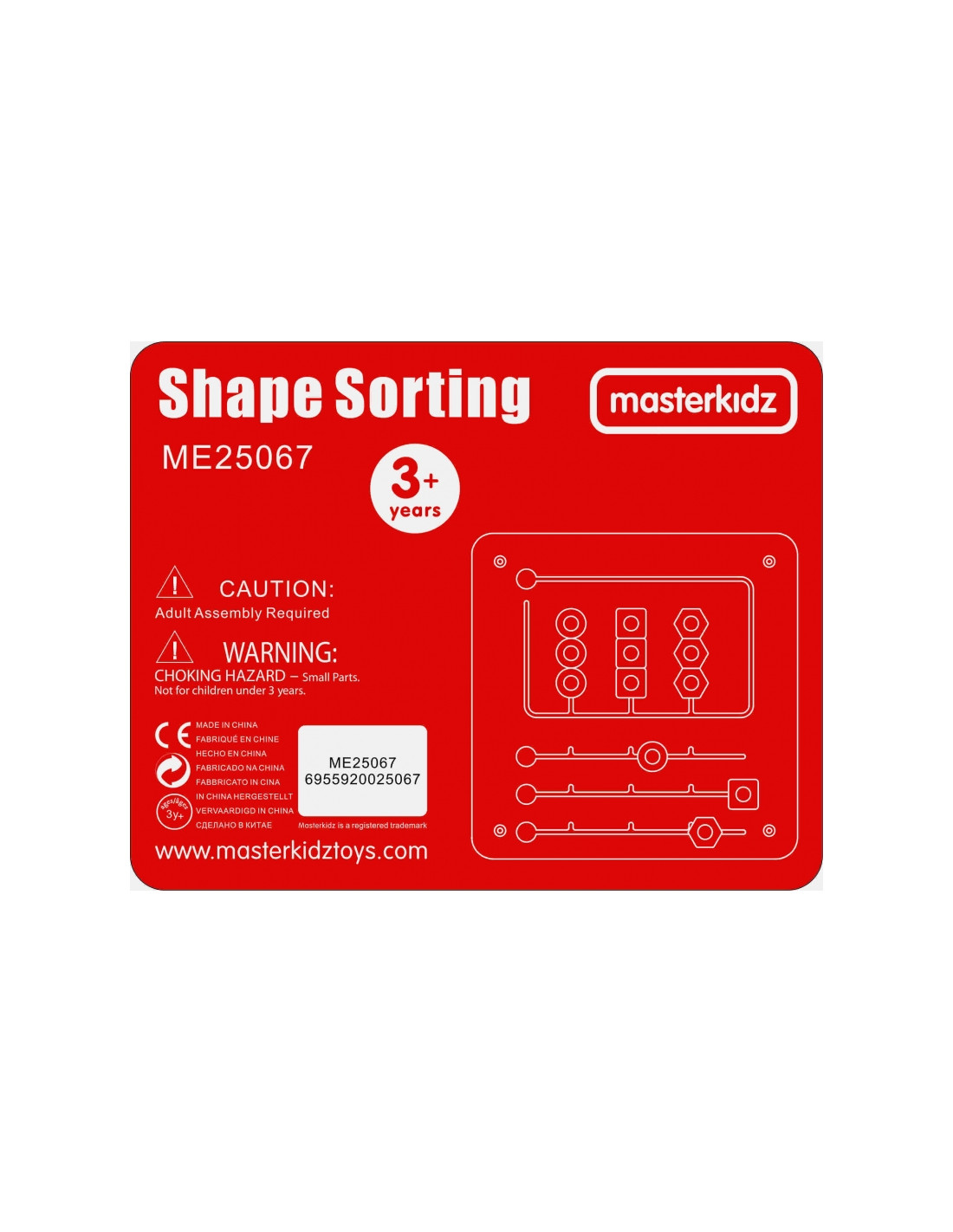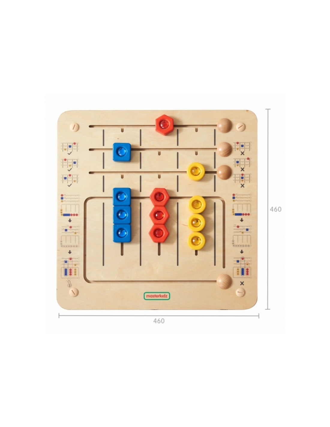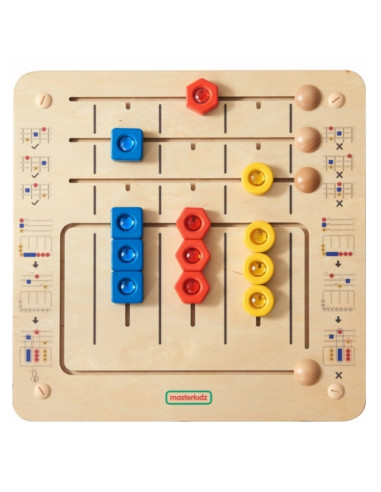 Ši mokomoji lenta daugiausia dėmesio skiria formų atpažinimui ir smulkiajai motorikai. Jis padalintas į dvi dalis: viršutinėje yra užduočių juosta, kurioje vaikai atitinkamose vietose turi sudėti tris figūras (raudoną šešiakampį, mėlyną kvadratą ir geltoną apskritimą). Lentos apačioje yra trys stulpeliai su 9 formomis, kuriuos vaikai turi suderinti su reikiamomis vietomis, sutelkdami dėmesį į spalvą ir formą. Elementai ant lentos dedami taip, kad juos būtų galima lengvai perkelti, bet neprarasti. Lentą galima naudoti ant stalo arba montuoti ant sienos.
