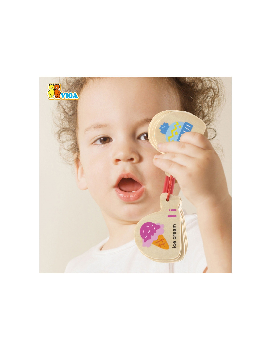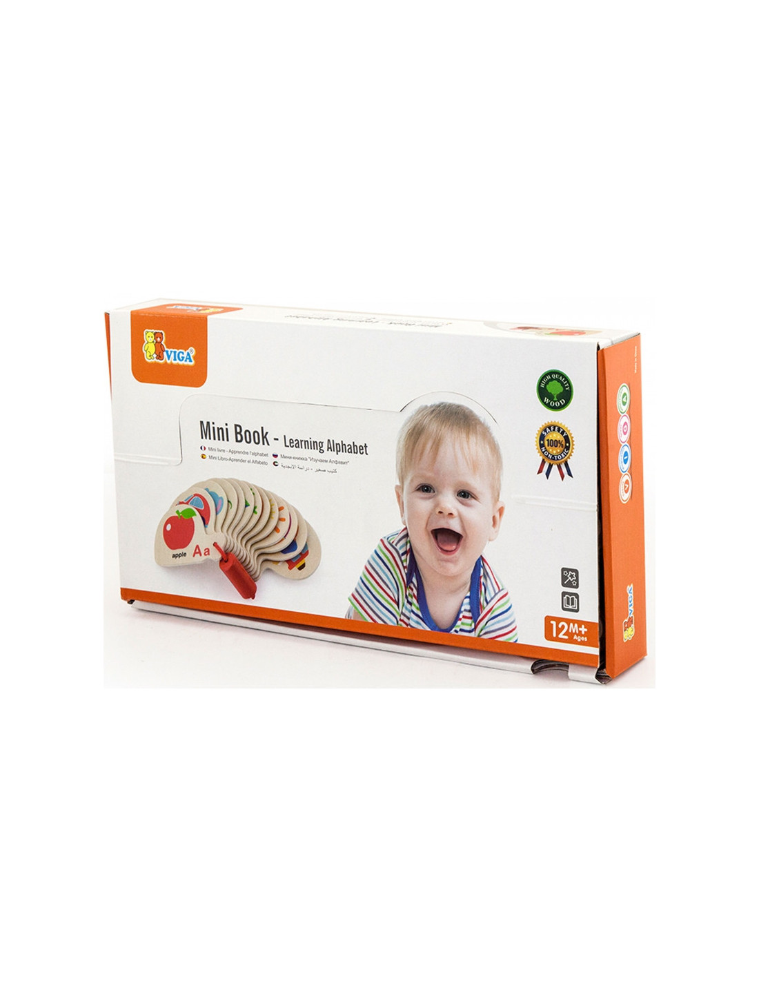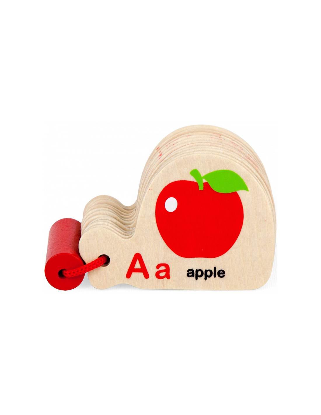Gerbiamo medinių žaislų gamintojo "Viga Toys" sukurtasabėcėlės mokymosi rinkinys, skirtas vaikams nuo 12 mėnesių, yra puiki idėja ir darželiui, ir namams. Medinės kortelės sujungtos raudona virvele. Kiekvienoje kortelėje yra skirtingas paveikslėlis, raidė ir pilnas pateikto daikto pavadinimas anglų kalba. Žaislas moko vaiką raidžių, padeda formuoti mažų rankų judesius, be to, vaikas mokosi pirmųjų žodžių anglų kalba.