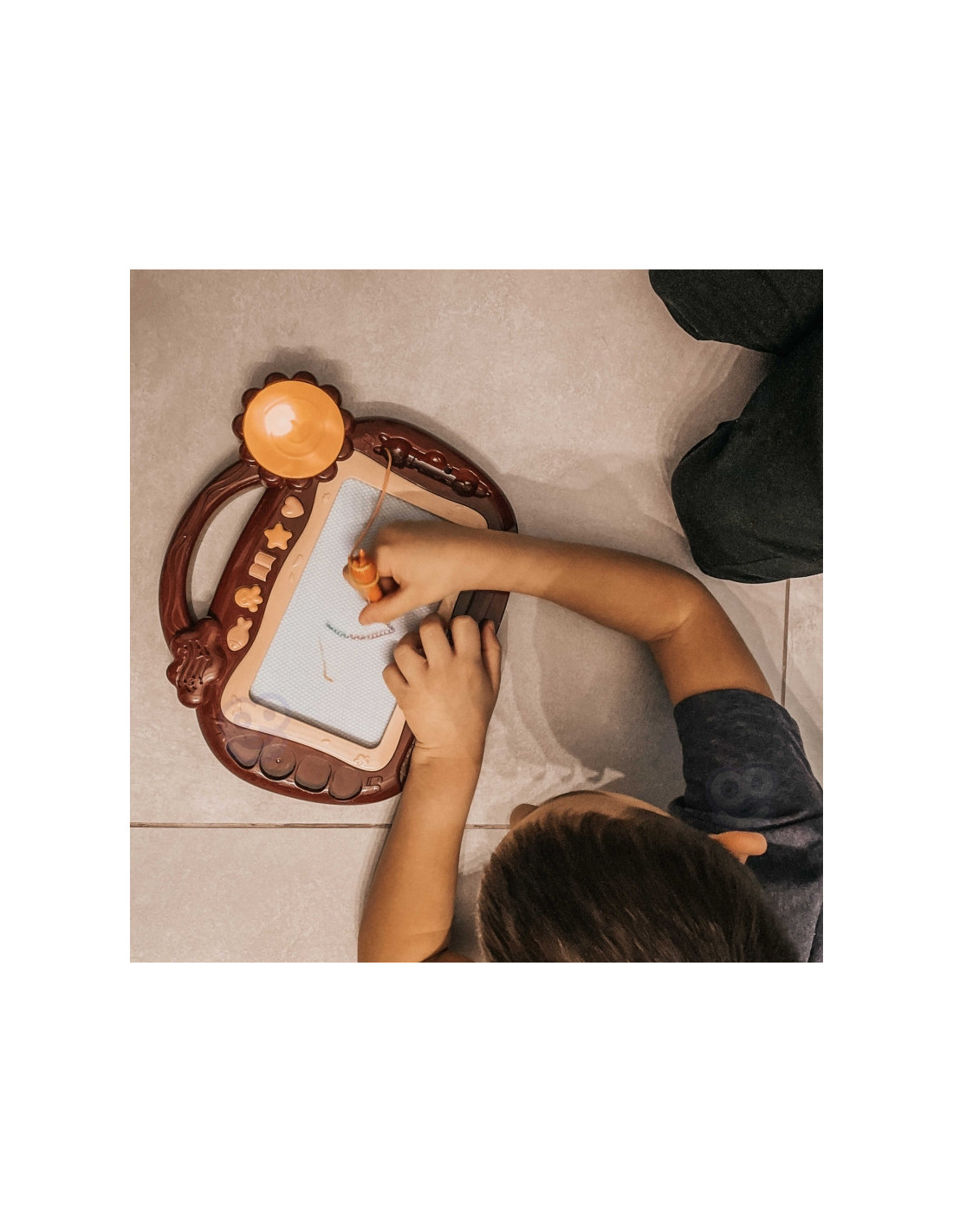 Magnetinė lenta "Zennopis" suteikia galimybę kūrybiškai žaisti ilgą laiką! Lenta skatina rašyti ir piešti. Piešimas padės susikaupti, nuraminti ir nuraminti vaiką. Naudodami lentą "Zennopis" galite sukurti begalę paveikslėlių - tereikia pajudinti specialų slankiklį, ir piešinys išnyks, o jūs galėsite piešti iš naujo! Rinkinyje papildomai yra patogus rašiklis ir iki 4 antspaudų, kurie paįvairins piešinius. Be to, jame yra 5 daugiafunkciniai mygtukai su daugiau kaip 400 skirtingų garso ir muzikos parinkčių, įskaitant: garso efektus, 4 vaikiškas daineles, elektroninius garsus, anglų kalbos abėcėlę ir būgną. Lentelė turi patogią rankeną, todėl vaikas gali ją bet kur pasiimti, ir turi galimybę išsikišti kojeles, todėl vaikui bus lengviau rašyti prie stalo. Zenonoskopas lavins jūsų vaiko rankų darbo įgūdžius, vaizduotę, kūrybiškumą ir padės ugdyti jūsų vaiko meninius gebėjimus !