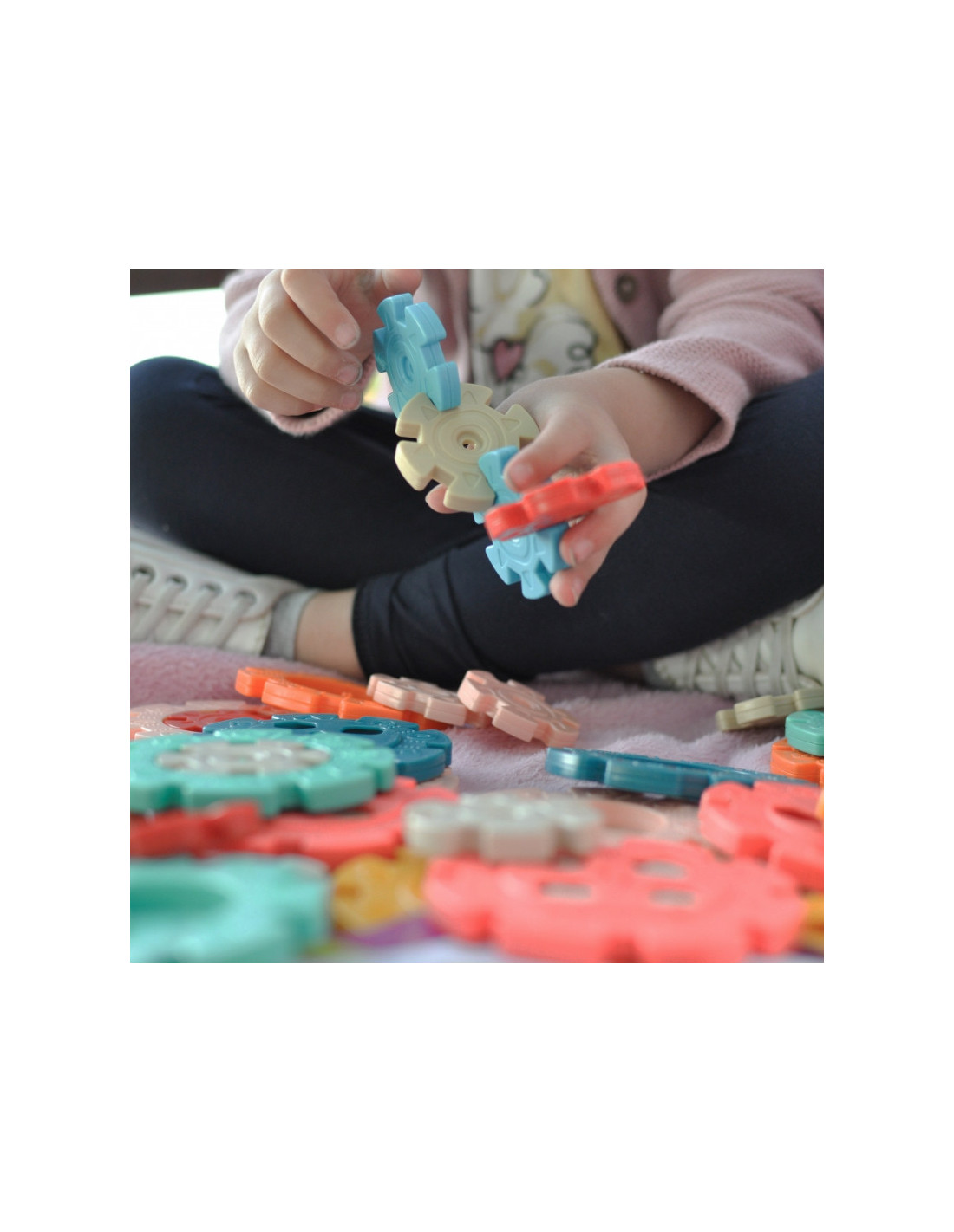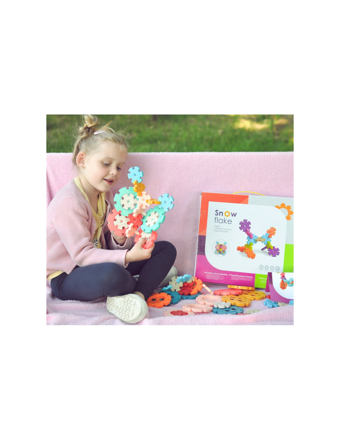 WOOPIE prekės ženklokonstruktyvios vaflinės plytos pritrauks dėmesį ir sužavės jūsų vaiką. Spalvingos detalės savo išvaizda primena snaiges. Blokelius labai lengva sujungti tarpusavyje, o dėl jų struktūros ir sujungimo būdo iš jų galima kurti įdomias trimates konstrukcijas. Dėl snaigėse esančių skylučių jas galima sujungti ne tik statmenai, bet ir kampu. Rinkinyje yra 52 elementai: 18 didelių ir 34 mažos plytos. Pačios konstrukcijos lavins vaiko loginį mąstymą, vaizduotę, kūrybiškumą ir padės susikaupti kuriant. Sudėdamas kaladėles vaikas susipažįsta su formomis ir spalvomis bei lavina rankų darbo įgūdžius, vadinamąją smulkiąją motoriką.