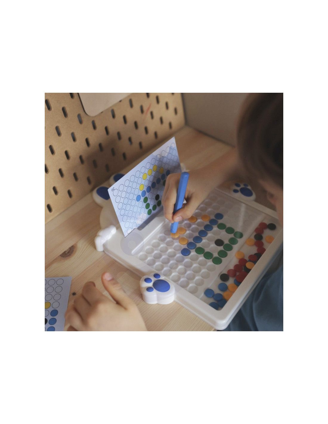 Tablica Magnetyczna MagPad od marki WOOPIE otwiera przed Twoim dzieckiem drzwi do świata kreatywności i edukacji. Dzięki tej wyjątkowej tablicy Twoje dziecko ma okazję tworzyć niepowtarzalne wzory i mozaiki. W skład zestawu, oprócz samej tablicy, wchodzi magnetyczny pisak, 50 magnetycznych guzików do tworzenia oraz 20 wzorów na 10-ciu obustronnych kartach. Ograniczeniem jest jedynie wyobraźnia i kreatywność - maluch może swobodnie układać wzory według własnych pomysłów. Guziki są mocne i trwałe, a układanie jest intuicyjne i proste. Ten zestaw to nie tylko zabawa, ale też doskonałe narzędzie do nauki i rozwijania zdolności manualnych, koncentracji oraz wyobraźni.