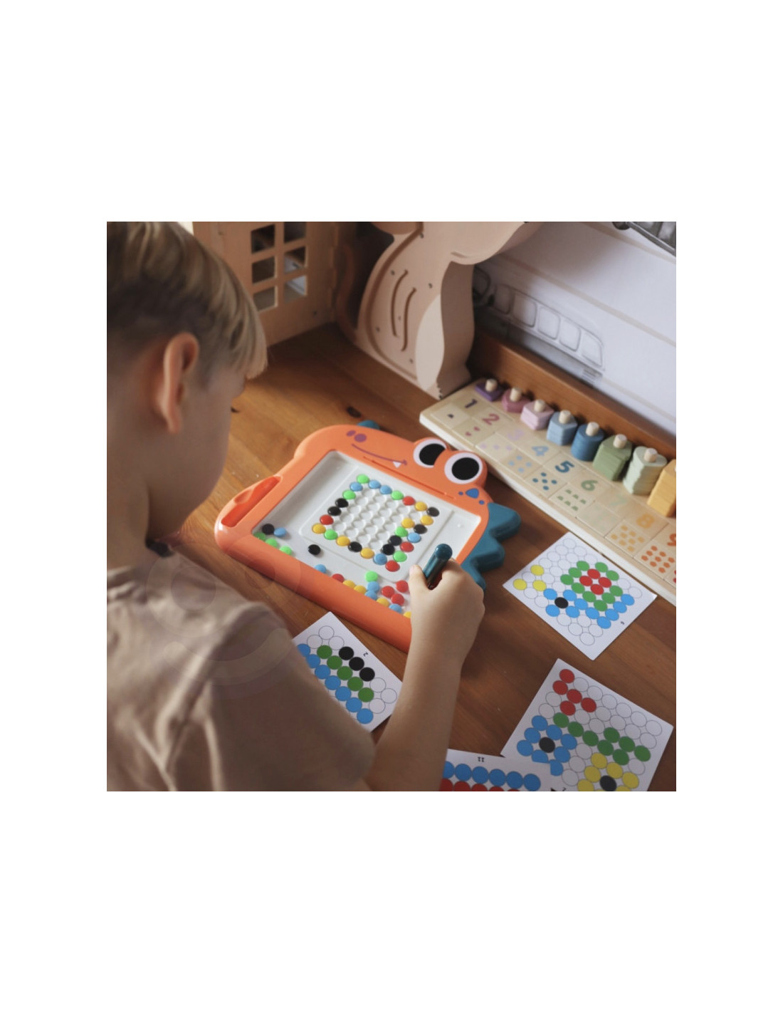 Tablica Magnetyczna MagPad od marki WOOPIE otwiera przed Twoim dzieckiem drzwi do świata kreatywności i edukacji. Dzięki tej wyjątkowej tablicy Twoje dziecko ma okazję tworzyć niepowtarzalne wzory i mozaiki. W skład zestawu, oprócz samej tablicy, wchodzi magnetyczny pisak oraz magnetyczne guziki do tworzenia. Ograniczeniem jest jedynie wyobraźnia i kreatywność - maluch może swobodnie układać wzory według własnych pomysłów. Guziki są mocne i trwałe, a układanie jest intuicyjne i proste. Ten zestaw to nie tylko zabawa, ale też doskonałe narzędzie do nauki i rozwijania zdolności manualnych, koncentracji oraz wyobraźni.