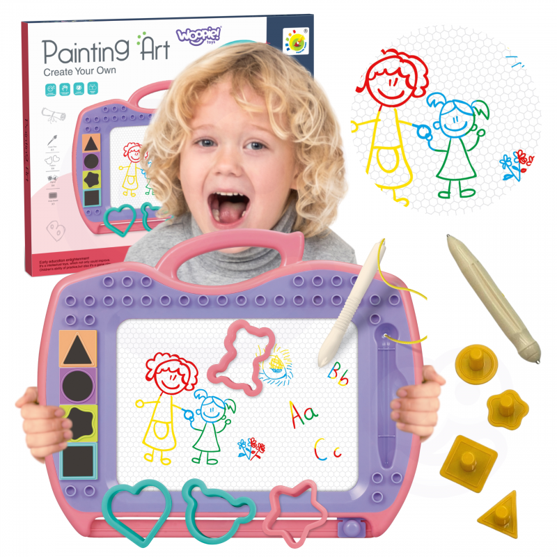 Magnetinė lenta "Zennopis" suteikia galimybę kūrybiškai žaisti ilgą laiką! Lenta skatina rašyti ir piešti. Piešimas padės susikaupti, nuraminti ir nuraminti vaiką. Naudodami lentą "Znikopis" galite sukurti begalę paveikslėlių - tereikia pajudinti specialų slankiklį, ir piešinys išnyks, o jūs galėsite piešti iš naujo! Rinkinyje papildomai yra patogus stebuklingas rašiklis, 4 antspaudai ir 4 raštai, kurie paįvairins piešinius. Lenta turi patogią rankeną, todėl vaikas gali ją pasiimti bet kur. Dingstantis rašiklis lavins jūsų vaiko rankų darbo įgūdžius, vaizduotę, kūrybiškumą ir suteiks jums galimybę ugdyti vaiko meninę pusę!