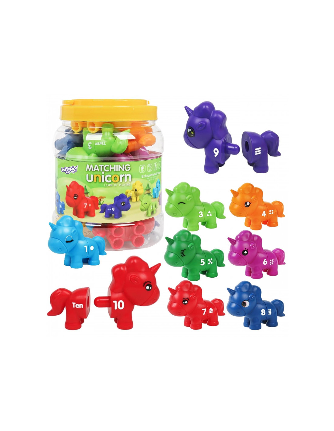 WOOPIE rinkinys Montessori spalvų vienaragio figūrėlių "Match Numbers" lankstymui 13 vnt.