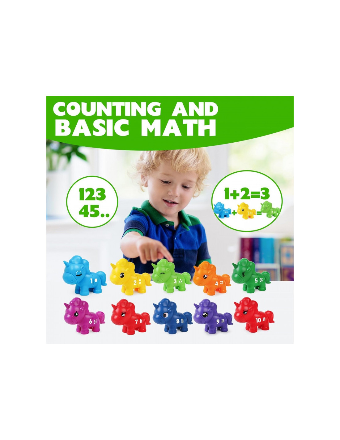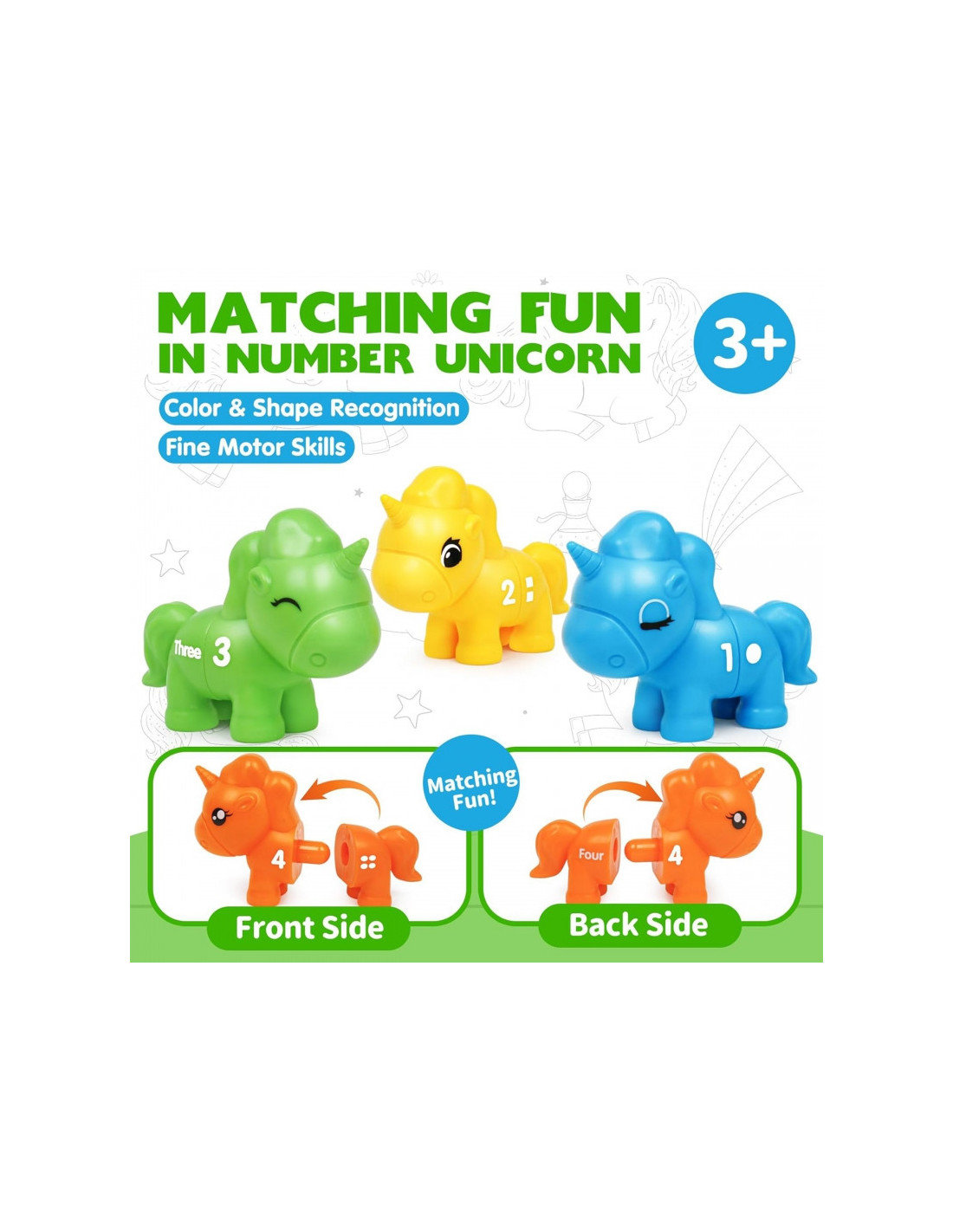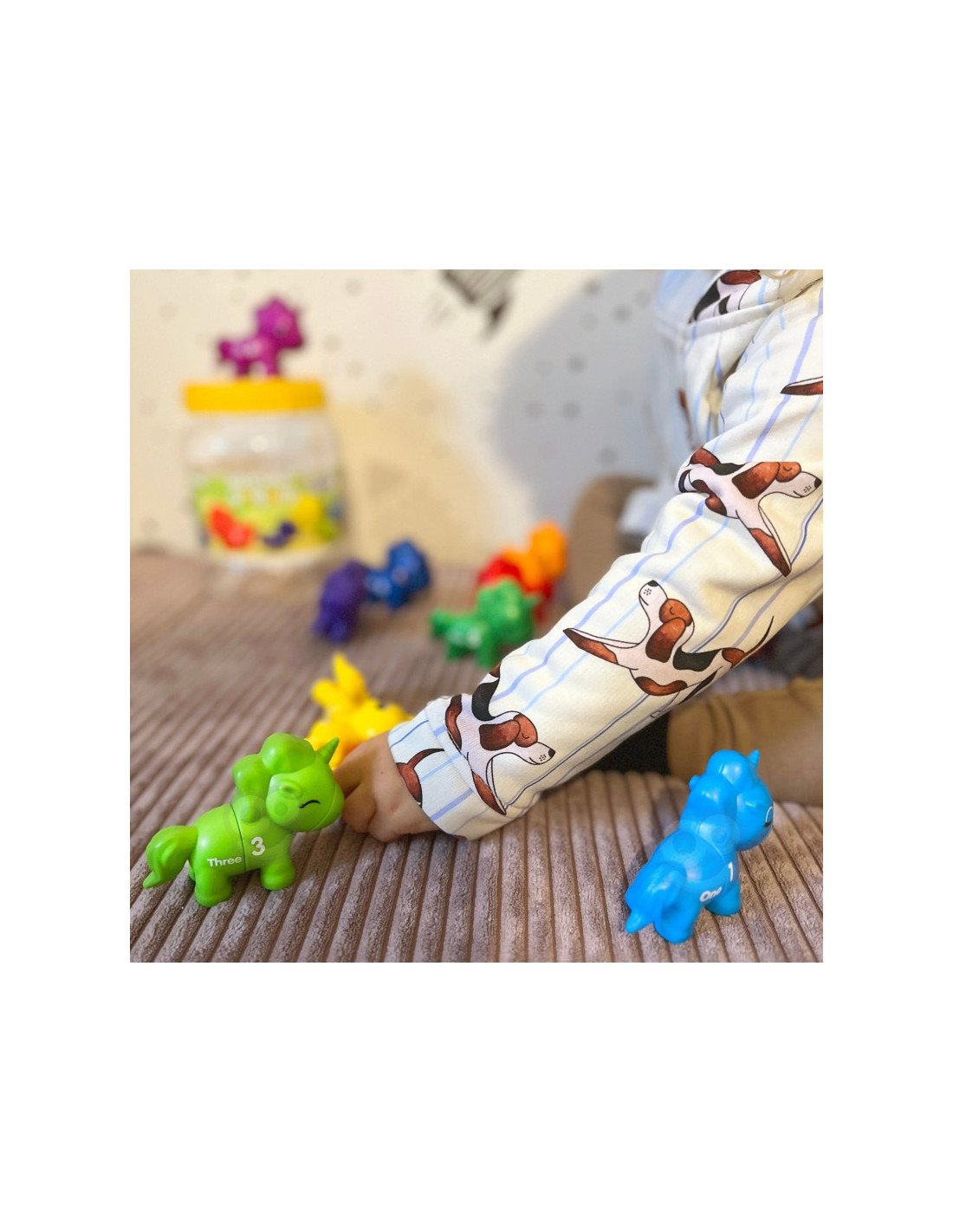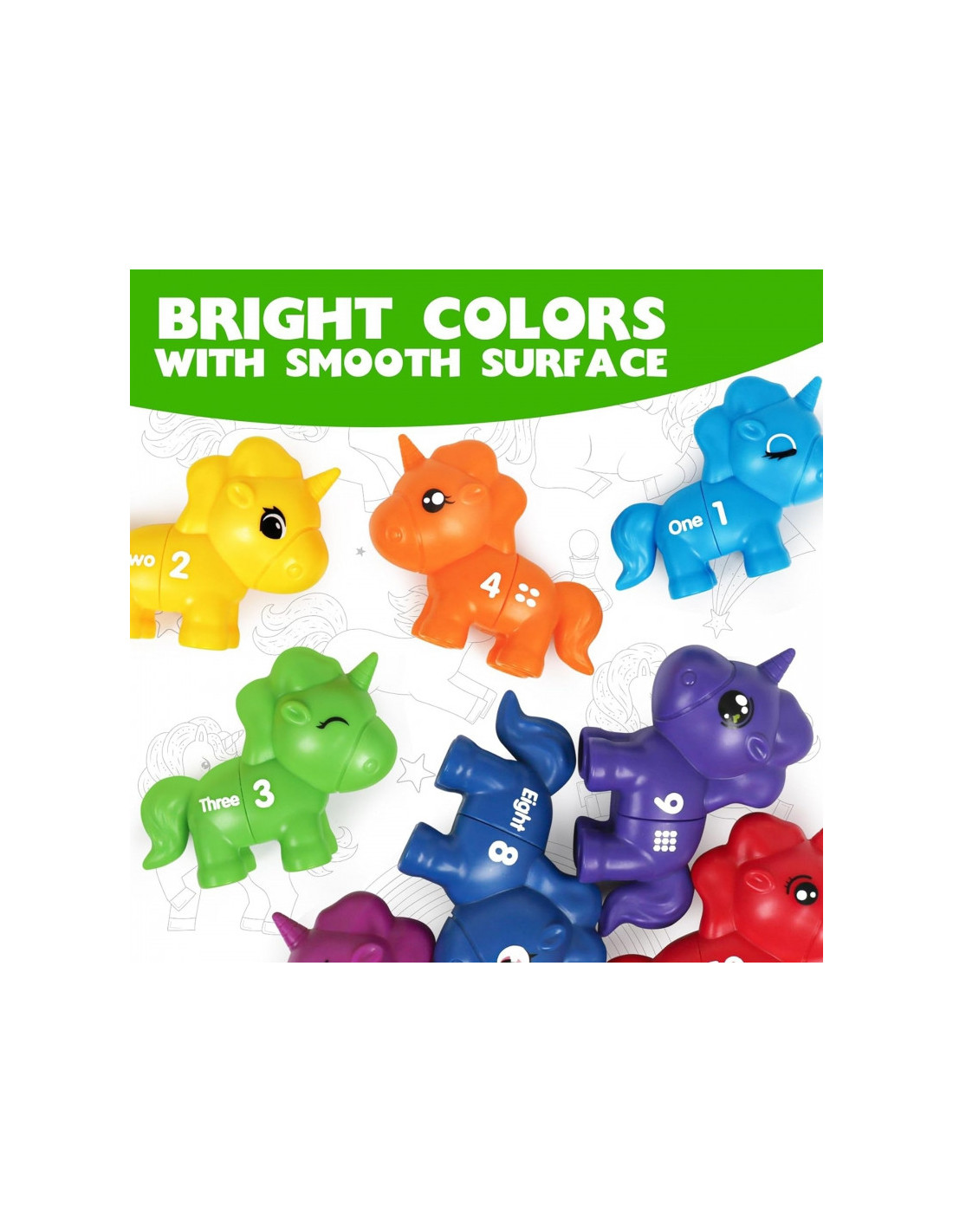 Mokomasis žaislas"Suderink skaičius" yra kūrybiškas žaislas, kuris nukels jūsų vaiką į stebuklingą vienaragių pasaulį. Žaisdami mažyliai gali sujungti įvairias vienaragio dalis, derindami jas pagal spalvas, skaičius ar formas. Tai ne tik puiki pramoga, bet ir lavinantis žaislas, skatinantis vaiko rankų darbo įgūdžius, įžvalgumą ir loginį mąstymą. Iš spalvingų vienaragių sudarytas rinkinys sukurtas taip, kad vaikams suteiktų valandų valandas įtraukiančio ir informatyvaus žaidimo.