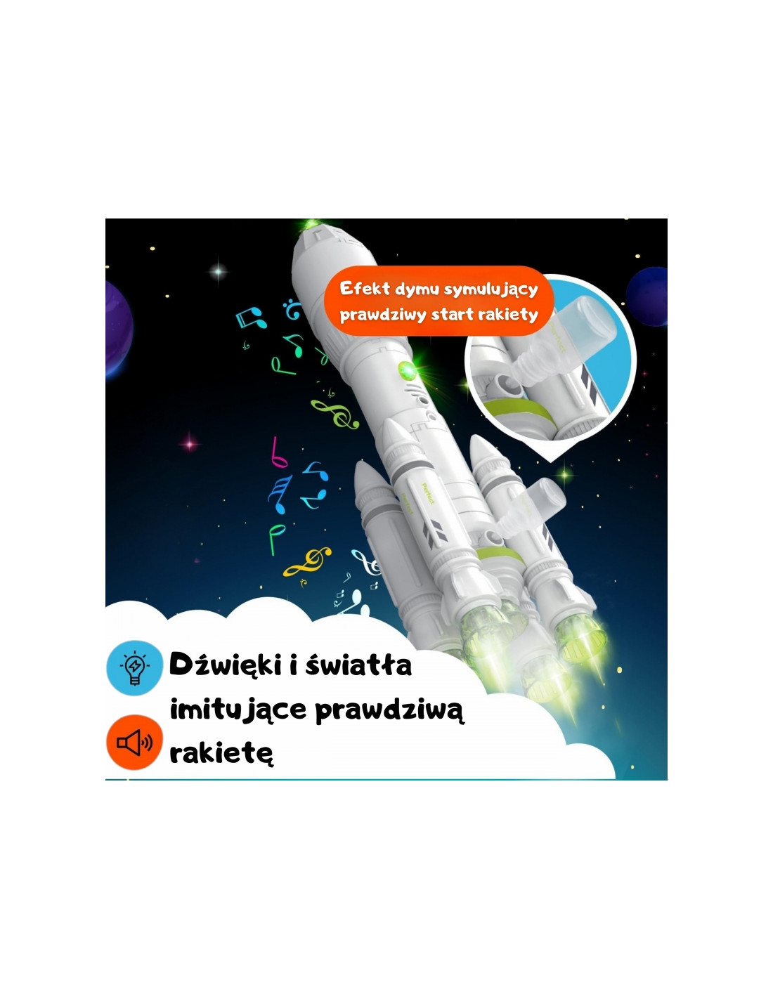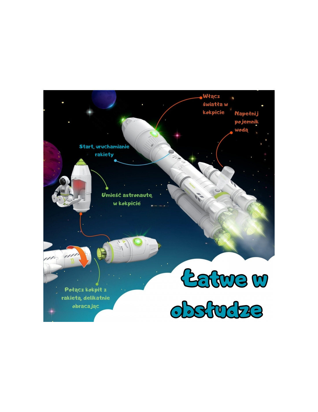 - - Dūmų imitacija – tiesiog įpilkite vandens iš čiaupo ir raketa išskirs rūką kaip tikro paleidimo metu