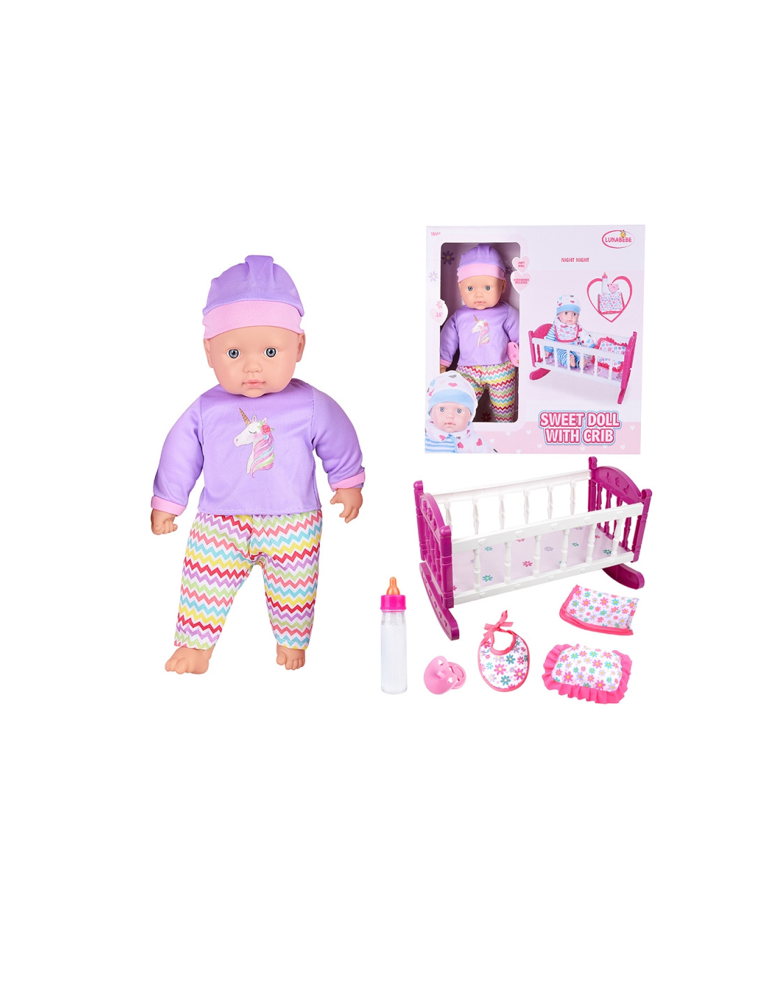 Atraskite magišką kūdikių priežiūros pasaulį su šia žavinga Woopie lėle ir rožine lovele! Šis nuostabus rinkinys puikiai tinka mažyliams, kurie mėgsta žaisti namelius. Minkšta lėlė su tikroviškais veido bruožais yra apsirengusi violetiniu kostiumu ir kepure, o rinkinyje yra viskas, ko reikia kasdienei kūdikio priežiūrai. Spalvingas, saugus dizainas žaidimų laiką paverčia dar įdomesniu ir lavinamuoju.
