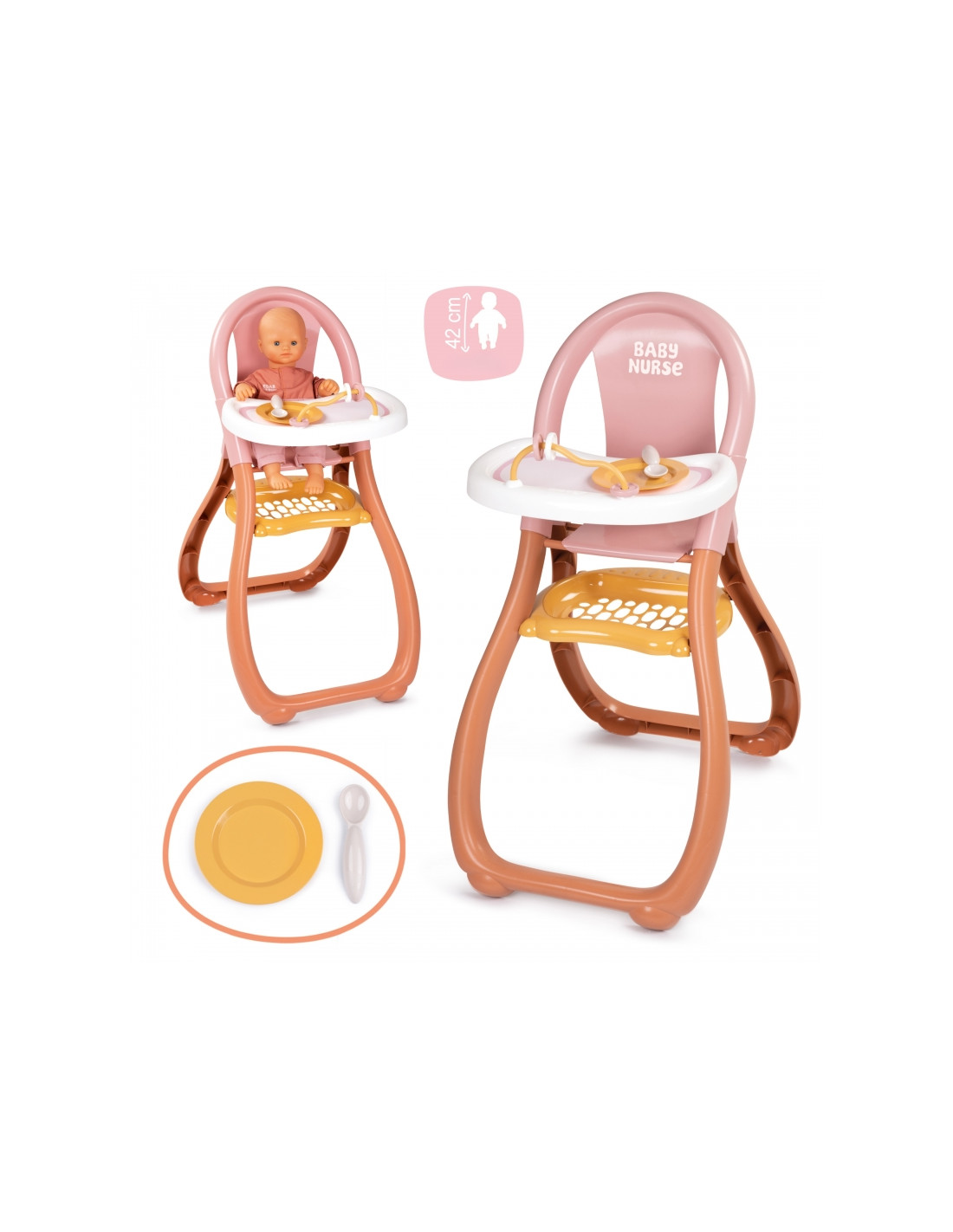 Kiekviena maža mergaitė svajoja rūpintis savo lėle kaip tikra mama! „Baby Nurse“ maitinimo kėdutė leidžia mėgautis kasdiene priežiūra, moko empatijos ir atsakomybės. Maitinimo kėdutė pasižymi moderniu dizainu ir gražiomis, mergaitiškomis spalvomis, kurios pradžiugins kiekvieną „mažąją mamą“. Žaislas turi praktišką lentynėlę ir prie stalo pritvirtintą žaislą, o rinkinyje taip pat yra lėkštė ir šaukštelis. Maitinimo kėdutė idealiai tinka lėlėms iki 42 cm, o žaidimas lavina kūrybiškumą, vaizduotę ir ankstyvuosius socialinius įgūdžius.
