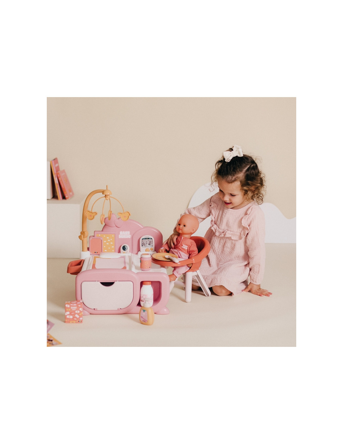 Kiekviena maža mama svajoja apie savo kampelį , kuriame galėtų rūpintis savo mylima lėle kaip tikras tėvas. Žinomo prekės ženklo Smoby žaidimų centras „Baby Nursing Play Center“ yra daugiafunkcis rinkinys , kuriame derinamas smagumas su mokymosi empatija ir atsakomybe . Vystymo stalas su karusele, elektroninis kūdikio monitorius su lopšinėmis ir maitinimo kėdutė leis vaikams vaidmenimis atrasti visas kasdienes situacijas iš savo mažylio gyvenimo. Įmontuotos lentynos ir stalčius padeda tvarkingai susitvarkyti daiktus, o aksesuarai visada yra po ranka. Šis pilnas rinkinys pradžiugins mergaites ir taps tikru žaidimų centru namuose!