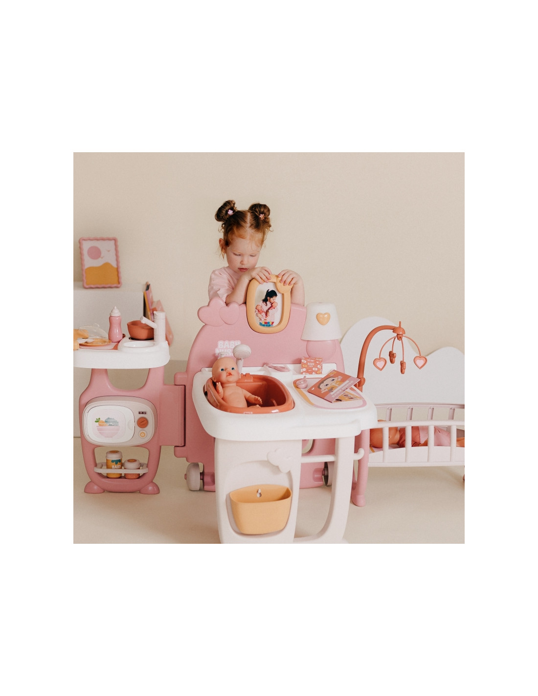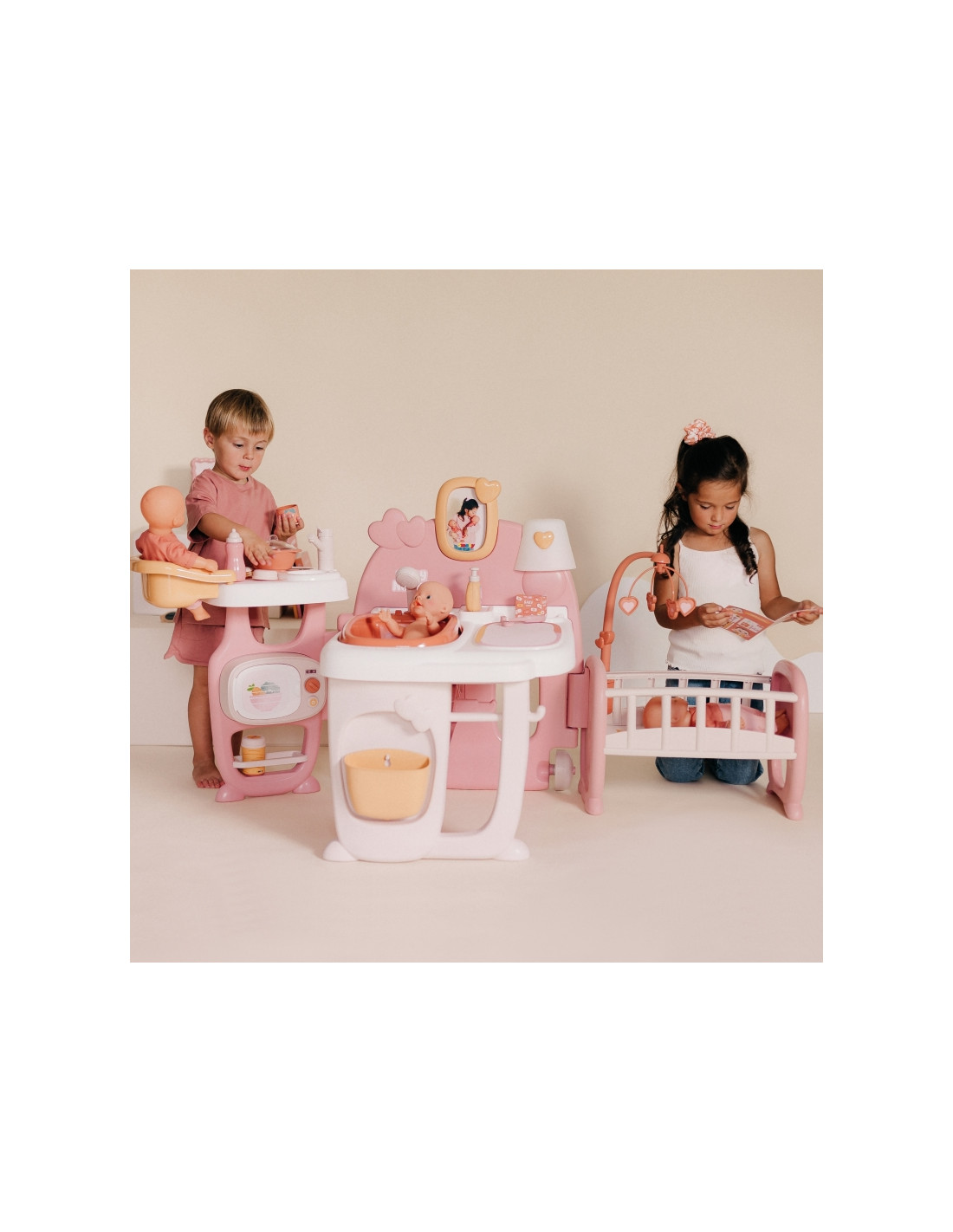 Kiekviena maža mama svajoja apie savo kampelį , kuriame galėtų rūpintis savo mylima lėle kaip tikras tėvas. Žinomo prekės ženklo Smoby žaidimų centras „Baby Nursing Play Center“ yra daugiafunkcis rinkinys , kuriame derinamas smagumas su mokymosi empatija ir atsakomybe . Vystymo stalas su karusele, elektroninis kūdikio monitorius su lopšinėmis ir maitinimo kėdutė leis vaikams vaidmenimis atrasti visas kasdienes situacijas iš savo mažylio gyvenimo. Įmontuotos lentynos ir stalčius padeda tvarkingai susitvarkyti daiktus, o aksesuarai visada yra po ranka. Šis pilnas rinkinys pradžiugins mergaites ir taps tikru žaidimų centru namuose!