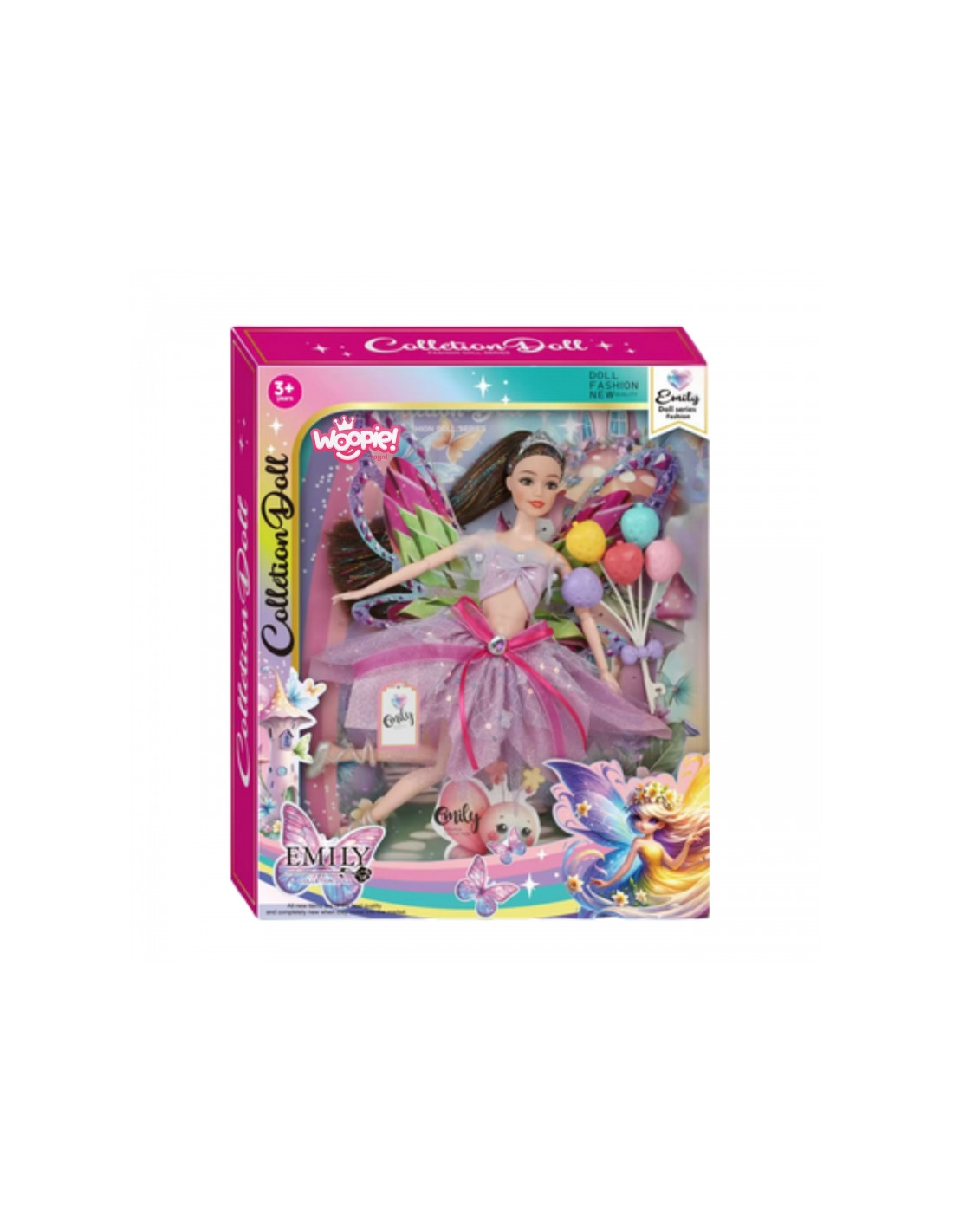 Nukelkite save į magišką fėjų pasaulį su gražiąja WOOPIE ROYAL lėle Emi ! Ši unikali lėlė žavi pasakų detalėmis , žvilgančiais sparnais ir žavinga pastelinių spalvų tiulio suknele. Rafinuota išvaizda ir gausūs aksesuarai suteiks valandų valandas kūrybinio žaidimo kiekvienam mažajam fantazijos mylėtojui. Puiki dovana, kuri žadina vaizduotę ir leidžia kurti begalę istorijų. Su „Emily Collection“ lėle kiekviena mergaitė pasijus lyg užburtame pasaulyje!