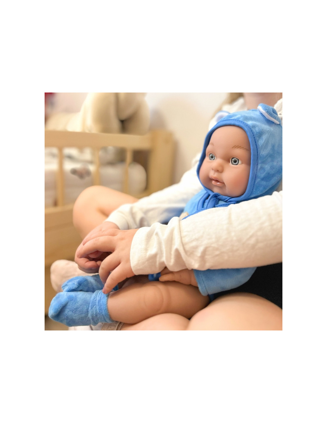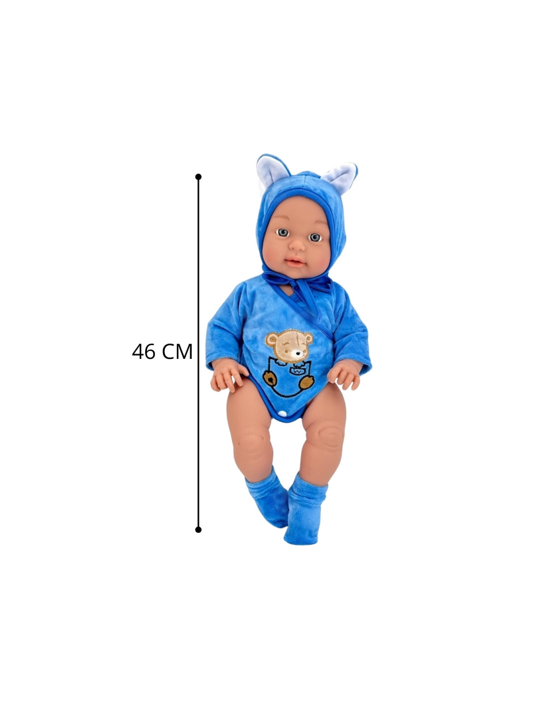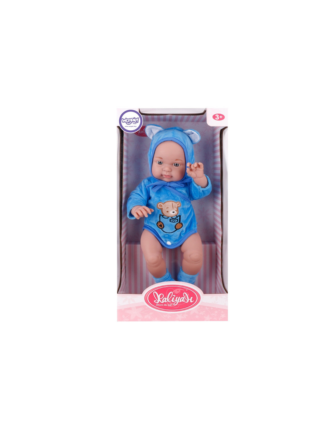 Kūdikių lėlių prekės ženklas Woopie pradžiugins kiekvieną vaiką! Kūdikio lėlė yra 46 cm ilgio, aprengta kostiumėliu / bodžiuku su gobtuvu ir batukais. Lėlė turi judančias galūnes , todėl ją galima pastatyti sėdinčią arba stovinčią. Žaisdamas su lėle vaikas ugdosi empatijos ir atsakomybės jausmą. Lėlė yra žavus mažylis, kuriam reikia daug priežiūros ir meilės. Žaislas pagamintas labai kruopščiai, tiksliai atkartojant tikro kūdikio lėlės išvaizdą, ištobulintą iki smulkiausių detalių , o drabužėlių medžiaga itin maloni liesti!