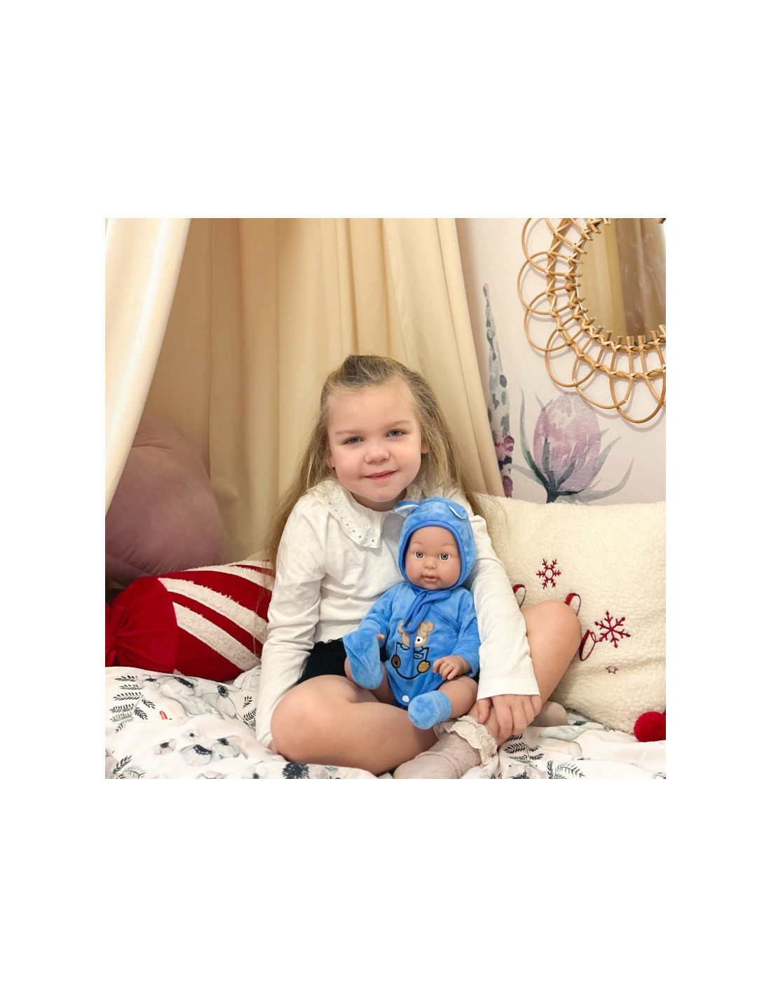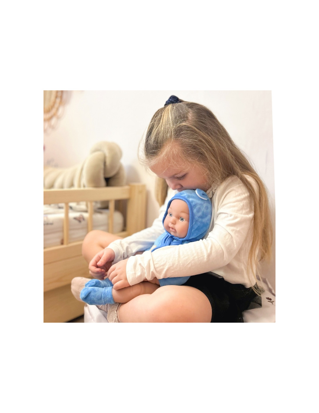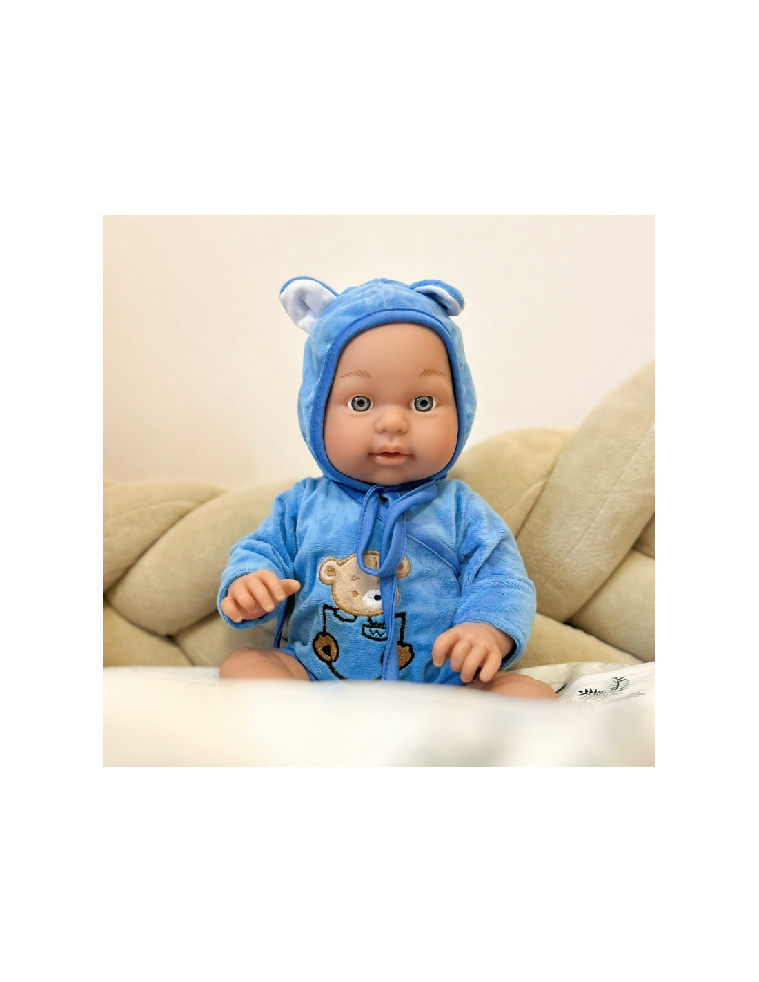 Kūdikių lėlių prekės ženklas Woopie pradžiugins kiekvieną vaiką! Kūdikio lėlė yra 46 cm ilgio, aprengta kostiumėliu / bodžiuku su gobtuvu ir batukais. Lėlė turi judančias galūnes , todėl ją galima pastatyti sėdinčią arba stovinčią. Žaisdamas su lėle vaikas ugdosi empatijos ir atsakomybės jausmą. Lėlė yra žavus mažylis, kuriam reikia daug priežiūros ir meilės. Žaislas pagamintas labai kruopščiai, tiksliai atkartojant tikro kūdikio lėlės išvaizdą, ištobulintą iki smulkiausių detalių , o drabužėlių medžiaga itin maloni liesti!