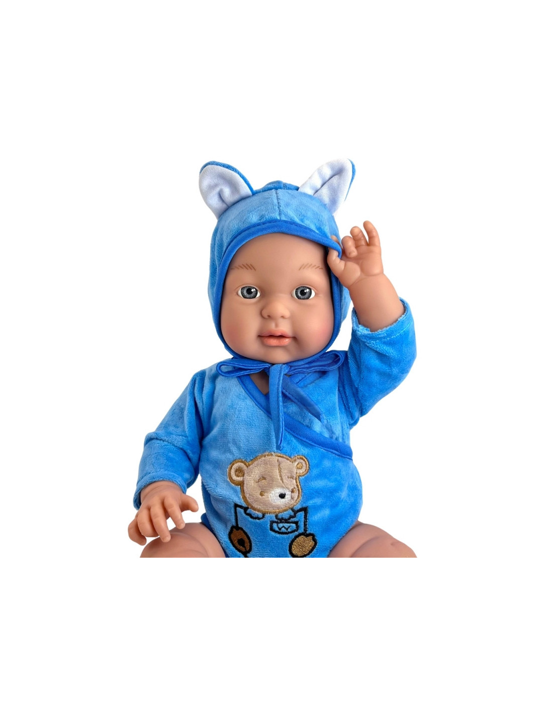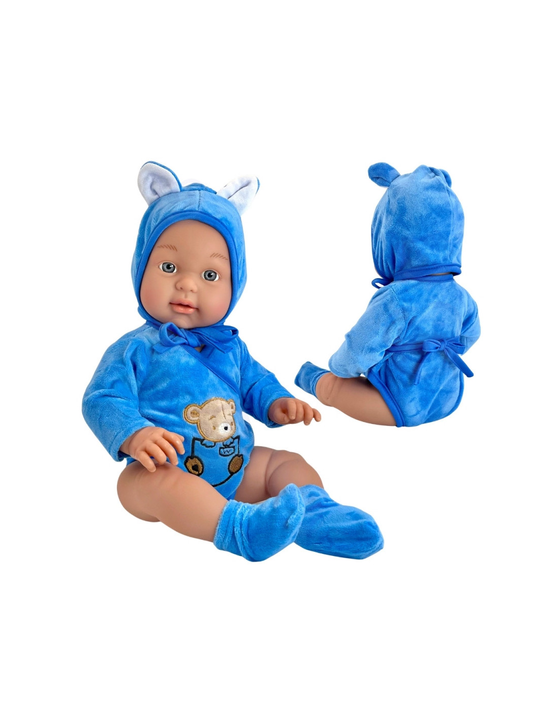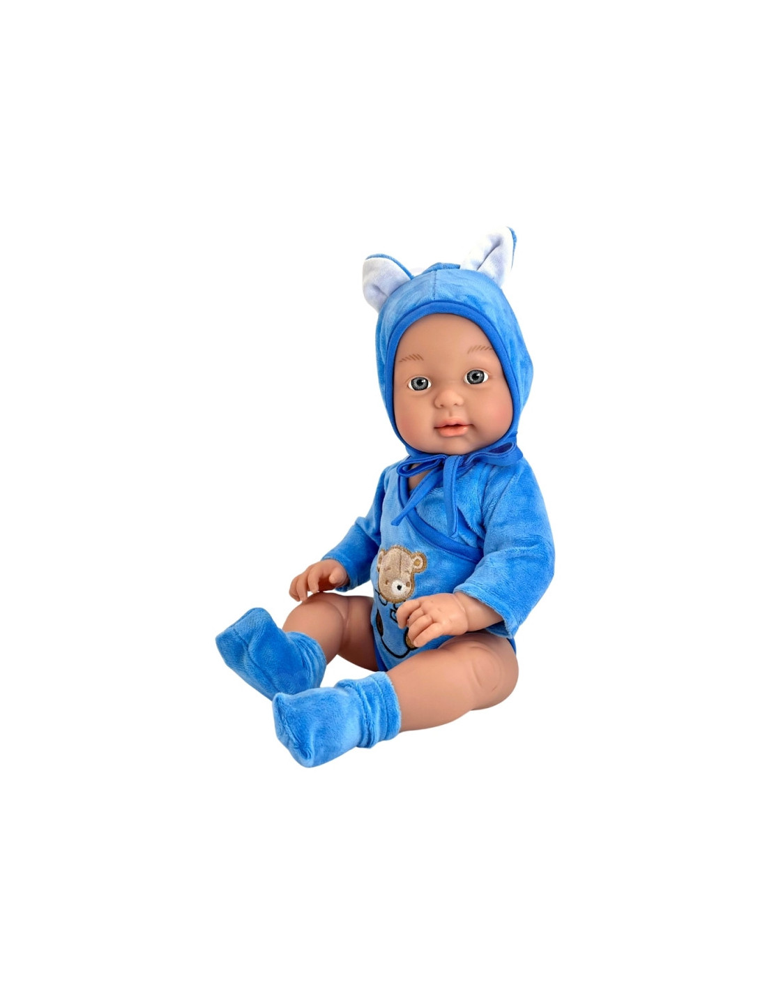 - - su miela mėlyna apranga: bodžiuku su meškiuku ir gobtuvėliu bei bateliais ir (arba) kojinėmis,