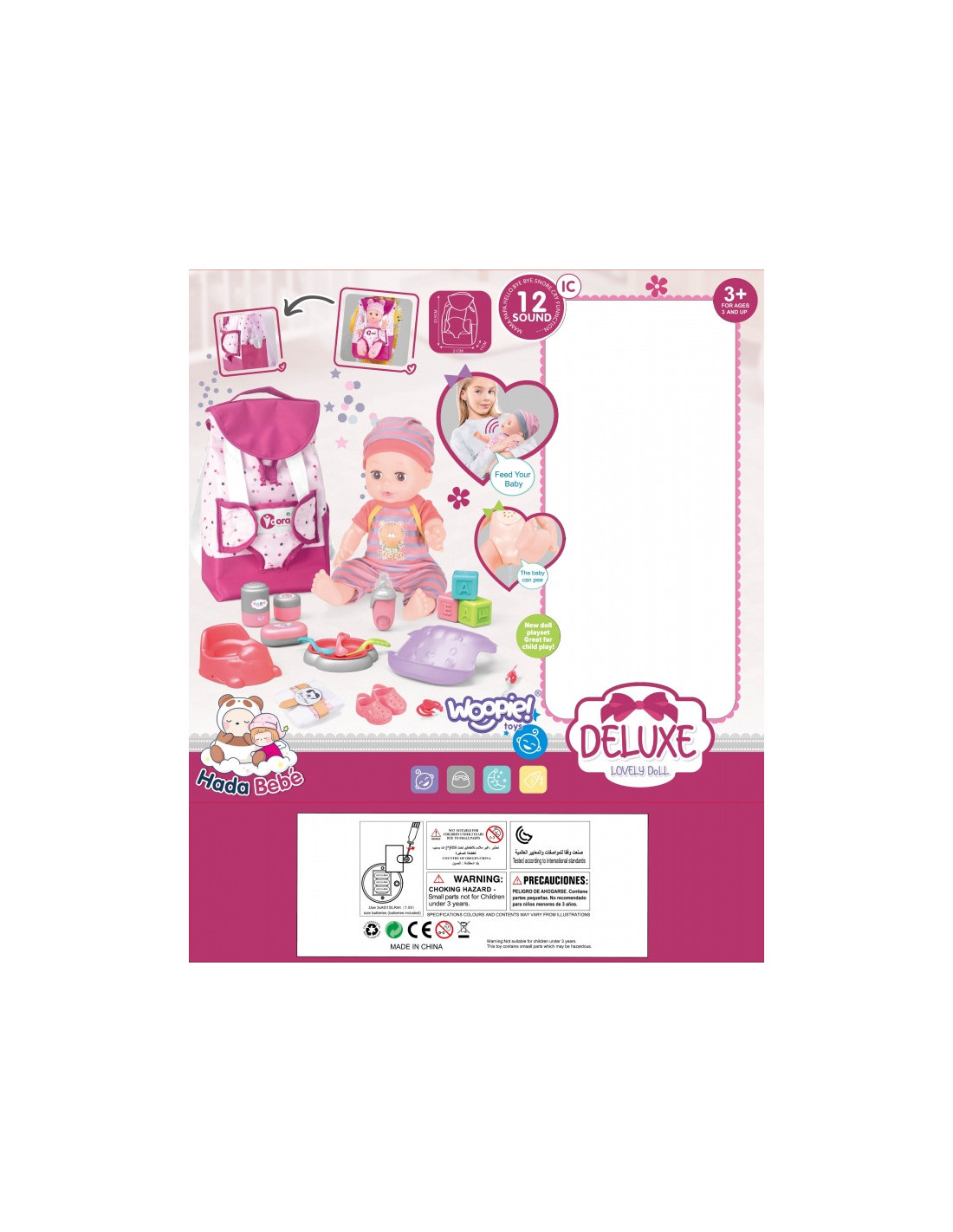 - - lėlė skleidžia 12 skirtingų kūdikio garsų