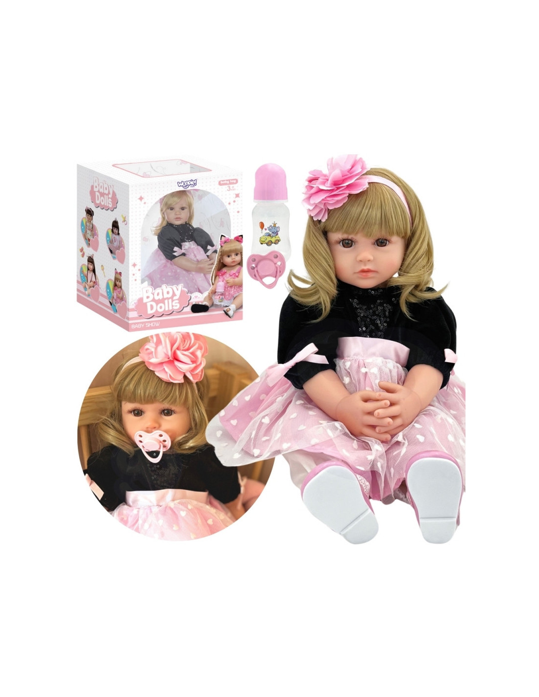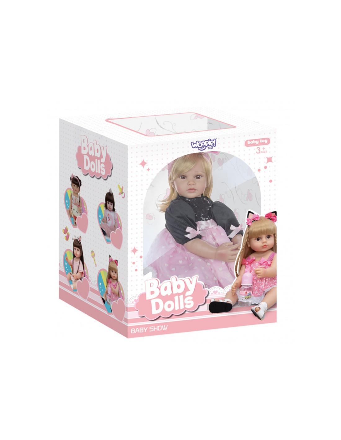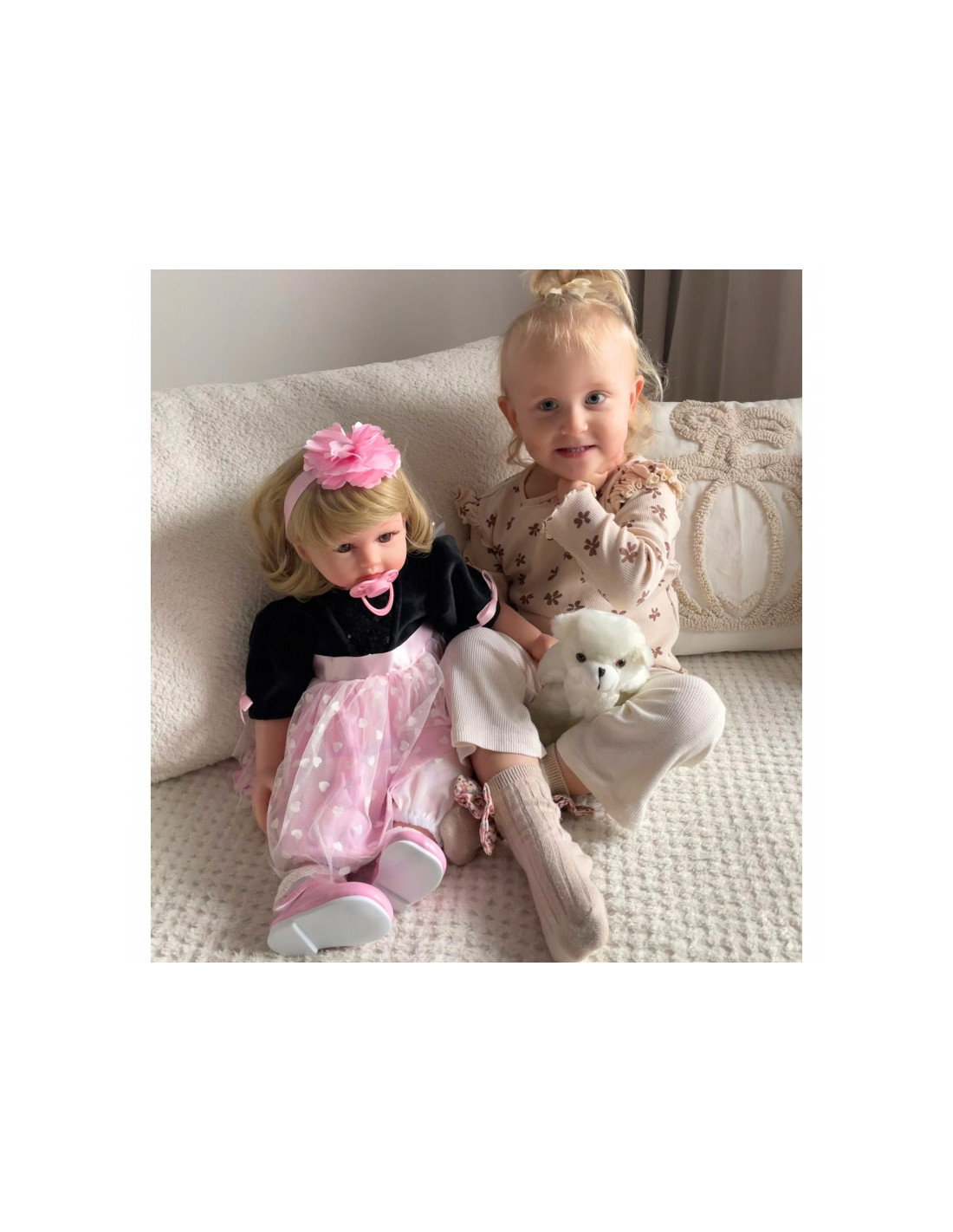 Interaktyvi WOOPIE prekės ženklolėlė iš serijos ROYAL yra kaip tikras kūdikis! Žaisdamas su lėle vaikas ugdosi empatijos ir atsakomybės jausmą! Lėlė yra minkšta liesti, o jos gražios akys traukia vaiko dėmesį. Jos gražūs, ilgi ir blizgantys plaukai puikiai tinka šukuoti, todėl vaikas gali kūrybingai kurti įvairias šukuosenas. Lėlės rankos ištobulintos, tikroviškumo joms suteikia švelnūs nagai, o šiek tiek paraudę skruostaipabrėžia lėlės grožį. Į komplektą įtraukta daugybė elementų - linksmybės bus begalinės, mažylis bus laimingas, o jūs - ramūs, kad laiką leidžia vertingai žaisdamas. Mūsų lėlės pagamintos labai kruopščiai ir su dideliu dėmesiu detalėms, kad atrodytų kaip tikros. Lėlė vilki rožinės ir juodos spalvų suknelę su mielais lankeliais. suknelė ties liemeniu nukirpta ir papuošta spalvingu raštu. aprangą papildo rožiniai bateliai, o mergaitei ant galvos uždėta atitinkama galvos juosta.