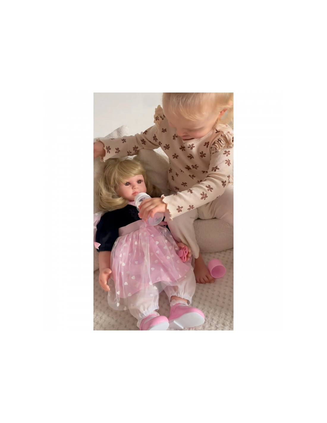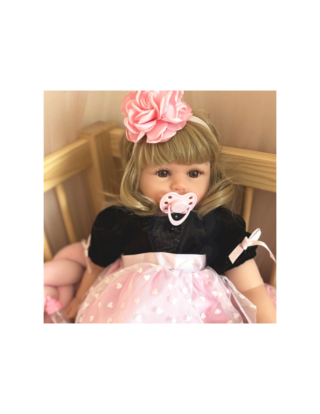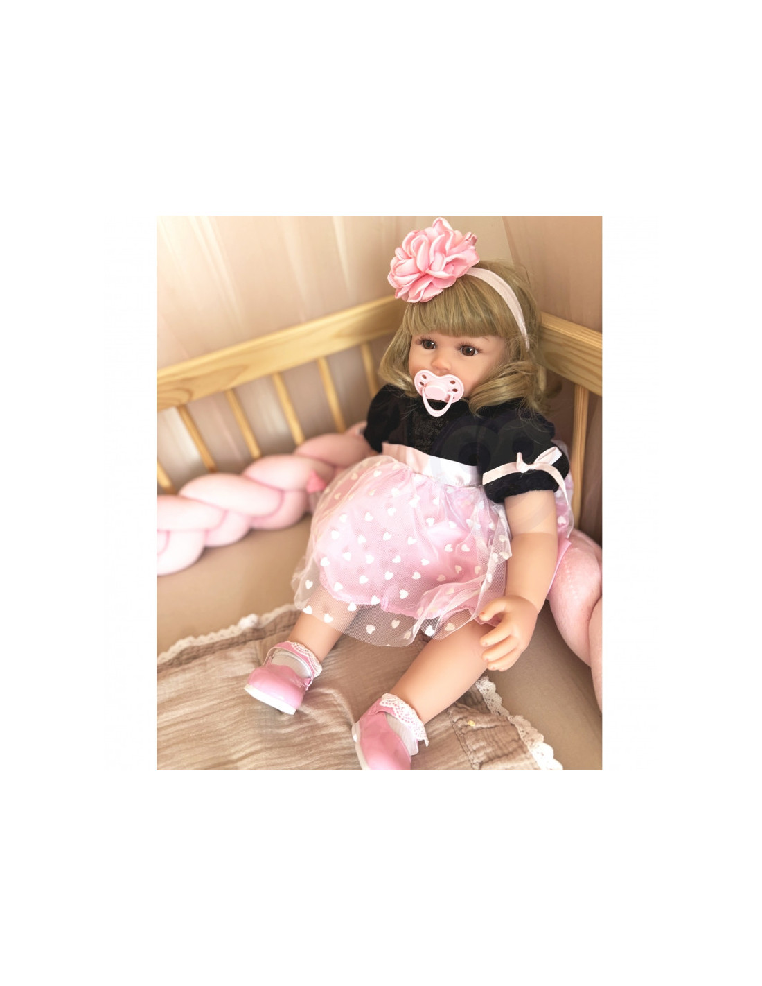 Interaktyvi WOOPIE prekės ženklolėlė iš serijos ROYAL yra kaip tikras kūdikis! Žaisdamas su lėle vaikas ugdosi empatijos ir atsakomybės jausmą! Lėlė yra minkšta liesti, o jos gražios akys traukia vaiko dėmesį. Jos gražūs, ilgi ir blizgantys plaukai puikiai tinka šukuoti, todėl vaikas gali kūrybingai kurti įvairias šukuosenas. Lėlės rankos ištobulintos, tikroviškumo joms suteikia švelnūs nagai, o šiek tiek paraudę skruostaipabrėžia lėlės grožį. Į komplektą įtraukta daugybė elementų - linksmybės bus begalinės, mažylis bus laimingas, o jūs - ramūs, kad laiką leidžia vertingai žaisdamas. Mūsų lėlės pagamintos labai kruopščiai ir su dideliu dėmesiu detalėms, kad atrodytų kaip tikros. Lėlė vilki rožinės ir juodos spalvų suknelę su mielais lankeliais. suknelė ties liemeniu nukirpta ir papuošta spalvingu raštu. aprangą papildo rožiniai bateliai, o mergaitei ant galvos uždėta atitinkama galvos juosta.