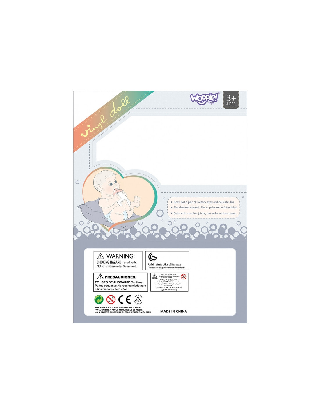- - Lėlė turi minkštas judančias gumines galūnes ir plastikinį pilvą be pliušinio užpildo
