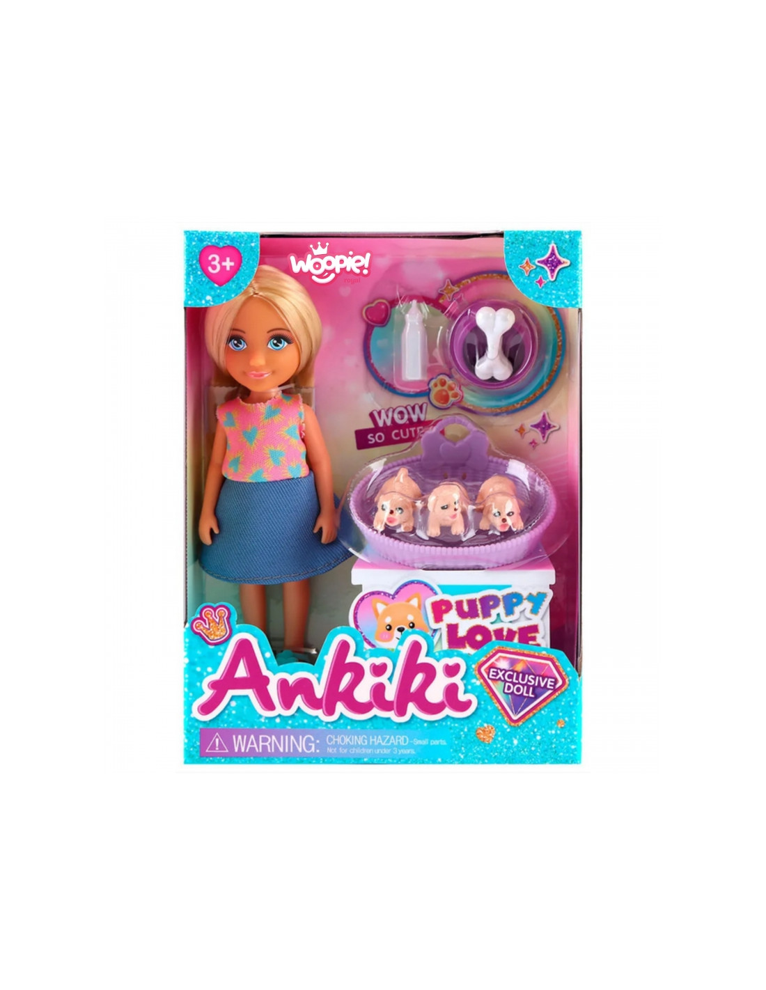 Atraskite jaudinantį augintinių priežiūros pasaulį su žavinga WOOPIE ROYAL lėle Ankiki ir trimis jos šuniukais! Šis unikalus rinkinys puikiai tiks bet kuriam mažajam gyvūnų mylėtojui . Lėlė Niki, vilkėdama madingą aprangą, yra pasiruošusi rūpintis savo mažyliais augintiniais , duoti jiems maisto ir kaulelį žaisti . Visas rinkinys puikiai lavina jūsų vaiko atsakomybės jausmą ir empatiją. Padovanokite džiaugsmo ir mokymosi per žaidimą dovaną!