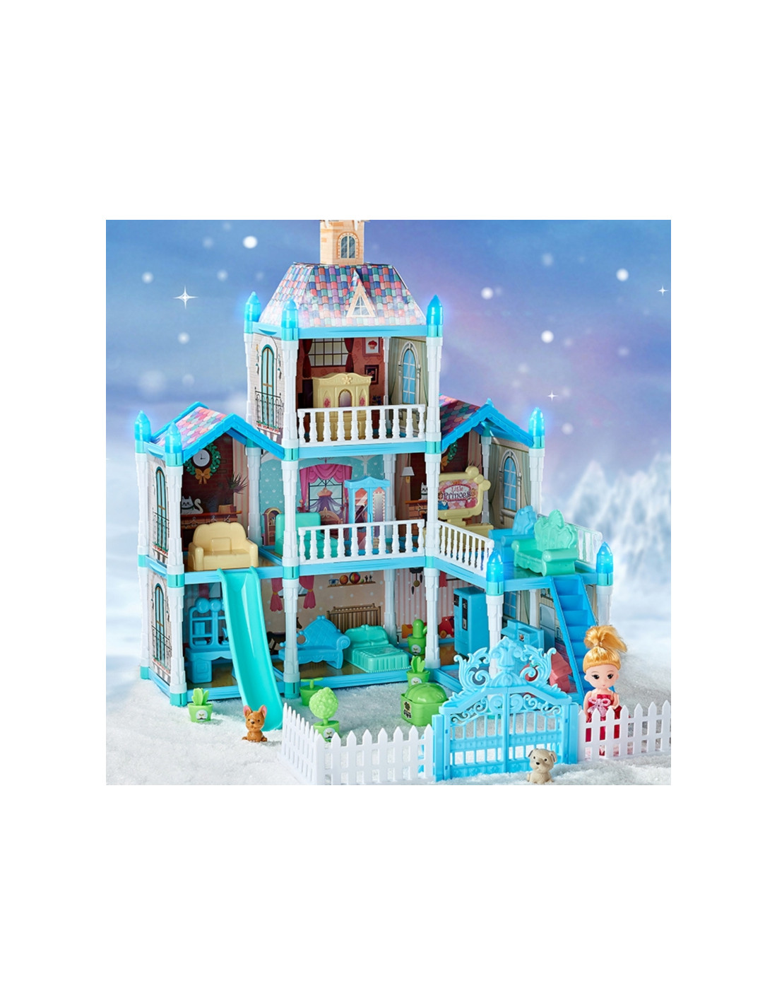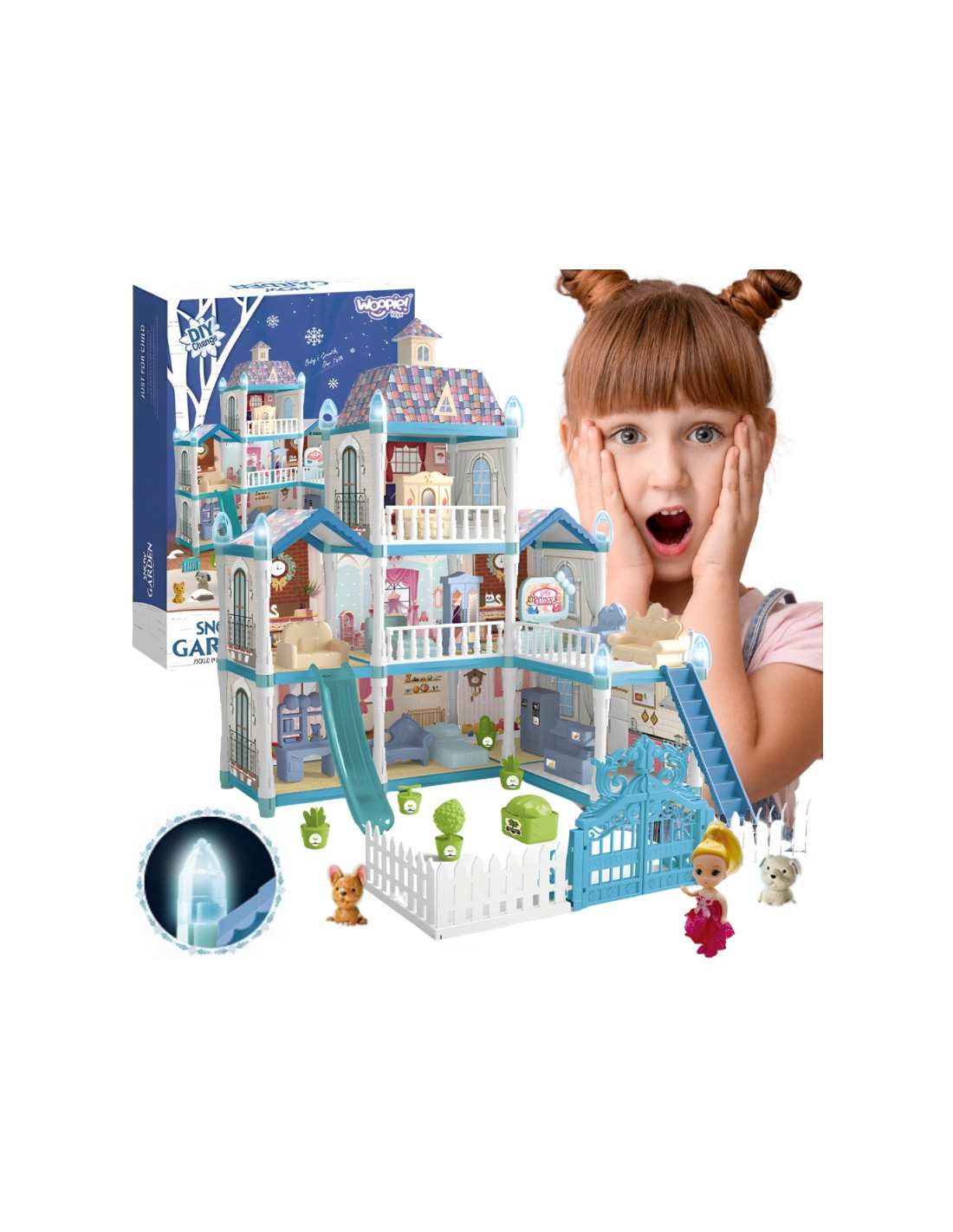 Atraskite magišką žaidimų pasaulį su Woopie “ lėlių namelio rinkiniu! Šie didžiuliai, trijų aukštų rūmai siūlo begales kūrybiško žaidimo galimybių. Rinkinį sudaro 191 detalė , įskaitant žavingą lėlę , du augintinius (šunį ir katę), prabangius baldus ir gražias, šviečiančias dekoracijas , kurios užtikrins linksmybes iki vėlumos. Namelis pasižymi žavinga mėlyna ir rožine spalvų gama, įkvėpta žiemos sodo. Tai puiki dovana , skatinanti vaidmenų žaidimą, kartu lavinanti vaizduotę ir socialinius įgūdžius.