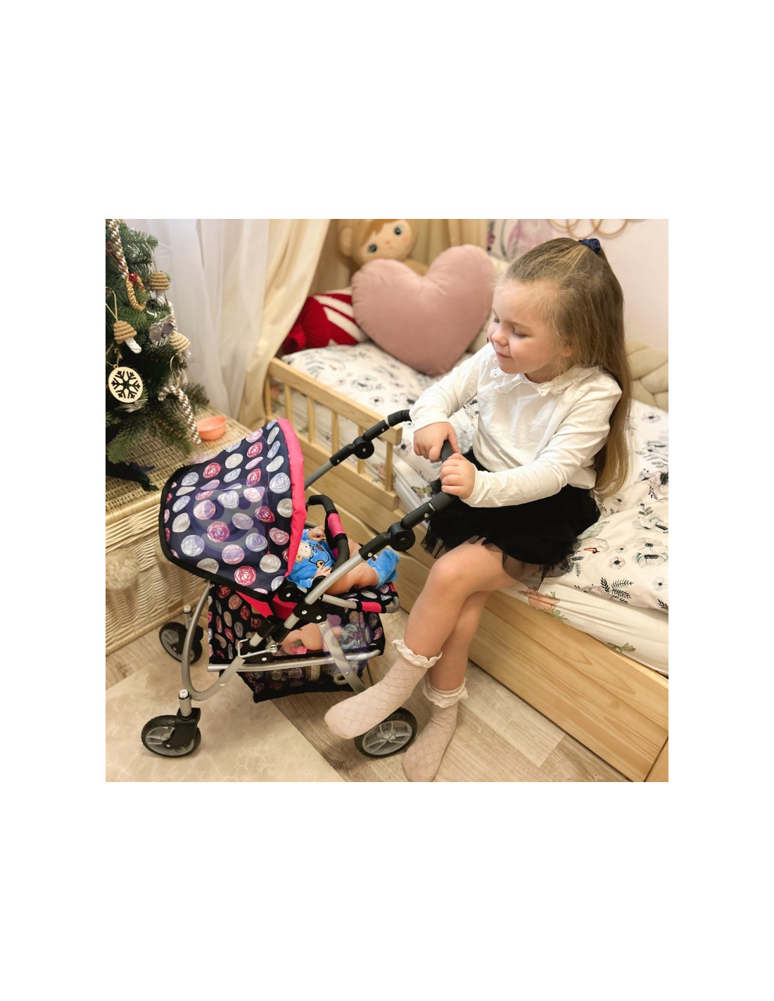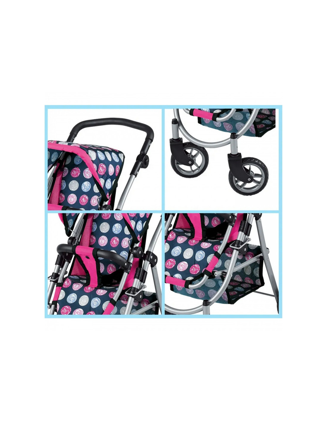Šis stilingas ir funkcionalus WOOPIE prekės ženklo lėlių vežimėlis yra svajonių dovana bet kuriam mažam lėlių žaidimų mėgėjui. Dėl reguliuojamos sėdynės jį galima lengvai pritaikyti skirtingiems žaidimų poreikiams, todėl juo galima vežti mėgstamiausias lėles. Sukamieji priekiniai ratai užtikrina sklandų valdymą, o tvirta konstrukcija - stabilumą vaikštant. Vežimėlis turi minkštą, patogią rankeną ir talpų priedų krepšį, į kurį galima sudėti visas žaidimo metu reikalingas smulkmenas. Sulankstomas stogelis apsaugo lėles nuo "saulės", o dėl kompaktiškos konstrukcijos vežimėlį lengva sandėliuoti pasibaigus žaidimams.