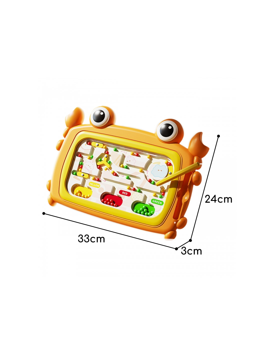 Atraskite žavų mokymosi per žaidimą pasaulį su mūsų „Woopie“ magnetine krabo formos mokymosi lenta! Ši lenta, sukurta atsižvelgiant į ankstyvojo vaikystės ugdymą, skatina mažų vaikų sensorinį, rankinį ir pažintinį vystymąsi per įtraukiančią veiklą, pavyzdžiui, kamuoliukų rūšiavimą pagal spalvą magnetiniu rašikliu, labirinto naršymą ir taisyklingą rašiklio laikymą. Pagaminta iš aukštos kokybės, saugių medžiagų, ji garantuoja patvarumą ir patogumą valandų valandas aktyviai žaidžiant. Ryškiai oranžinė lentos spalva ir krabo formos dizainas skatina mažylius žaisti. Lentai nereikia baterijų, o dėl kompaktiško dydžio ji puikiai tinka tiek namams, tiek kelionėms. Savybės: