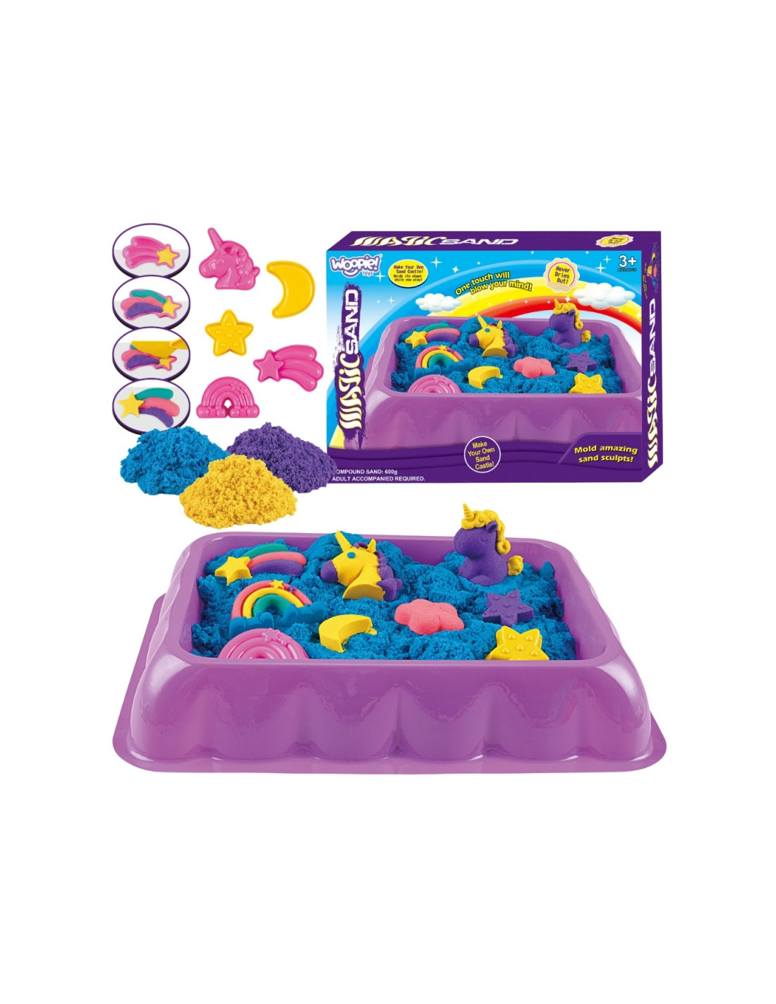 Ženkite į magišką fantazijų pasaulį su Woopieprekės ženklo "Magic Kinetic Sand Unicorns & Rainbows" rinkiniu! Šis neįprastas smėlis, kuris niekada neišdžiūsta ir yra aksominis liesti, leis jūsų vaikui susikurti savo pasakų šalį. Rinkinyje yra spalvingas smėlis ir mielų vienaragių, vaivorykštės, žvaigždžių ir debesų formos formos, kurios sužadins vaizduotę ir suteiks valandų valandas kūrybinių linksmybių. Puikiai tinka lavinti rankinius ir jutiminius įgūdžius, be netvarkos ir rūpesčių dėl valymo!