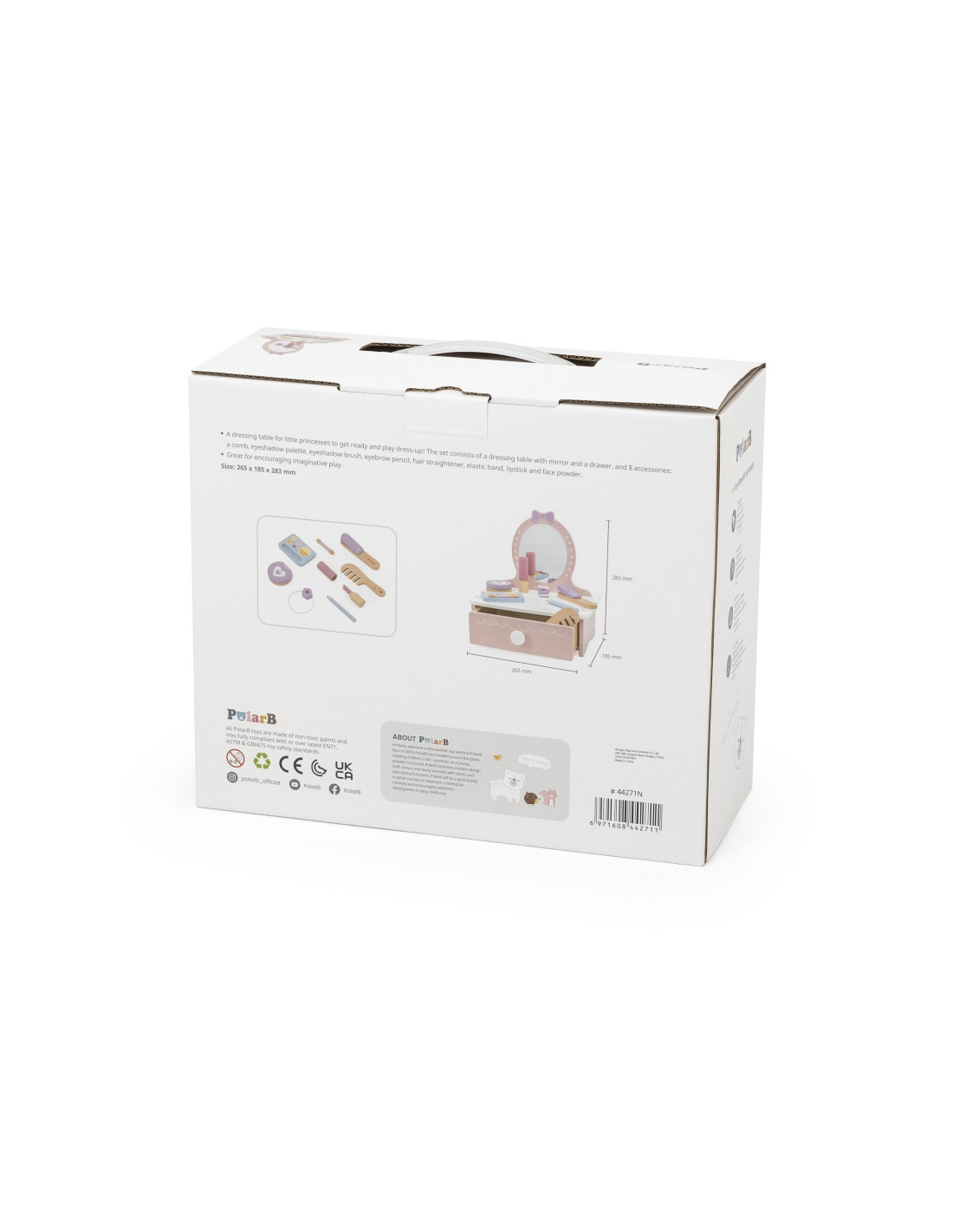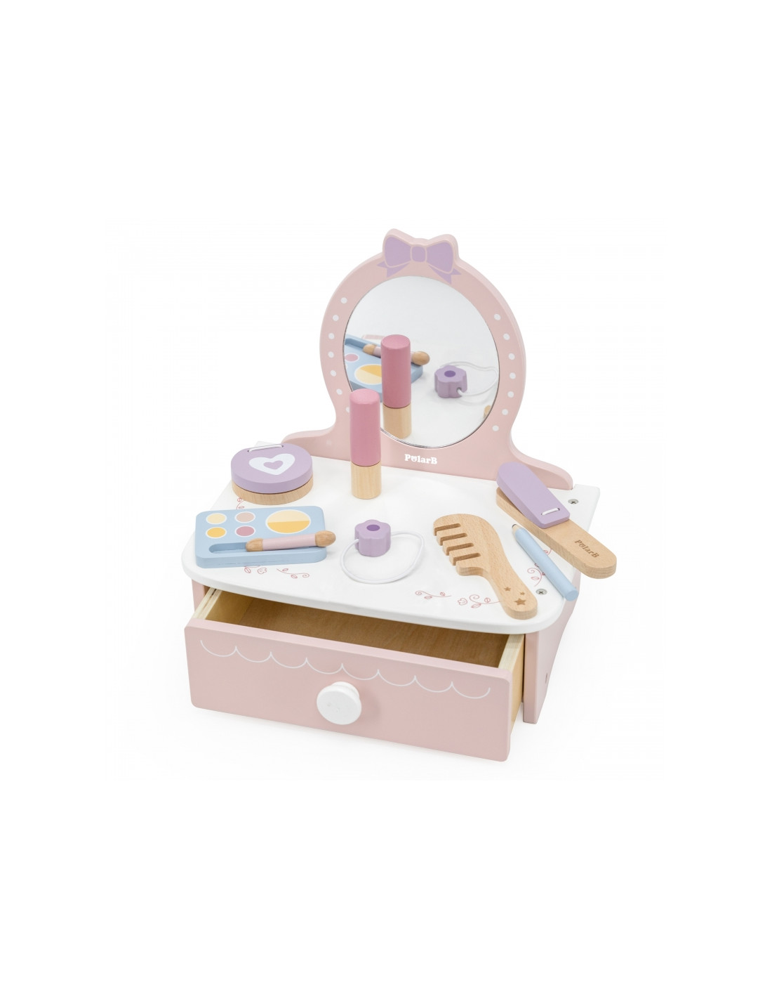 Šis gražus medinis „Viga“ tualetinis staliukas – tobulas žaidimų rinkinys bet kuriai mergaitei , kuri mėgsta persirenginėti, žaisti su nameliais ar grožio salonu. Pastelinių spalvų, su saugiu veidrodėliu ir daugybe žavingų aksesuarų, suteiks jūsų vaikui daug džiaugsmo ir užims jį valandų valandas. Šis žavus medinis tualetinis staliukas yra ne tik žaislas – tai vartai į fantazijos ir kūrybinio žaidimo pasaulį!